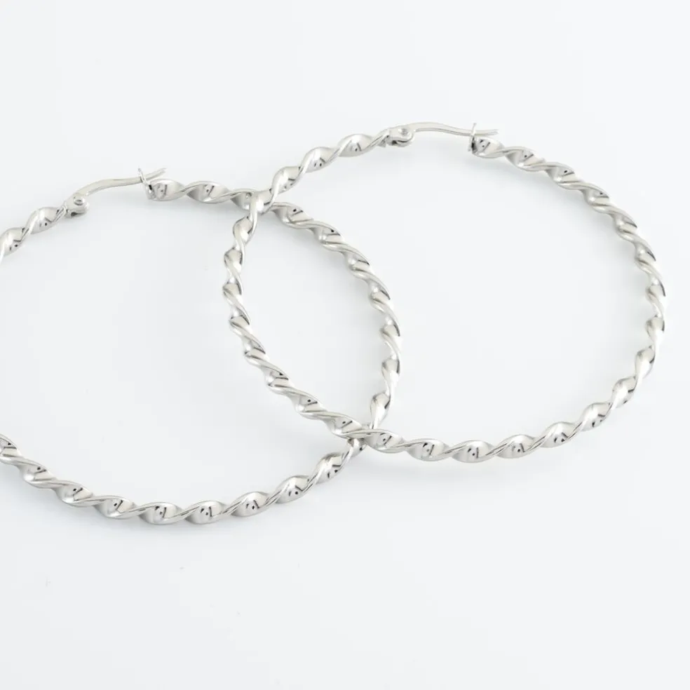 Creoles Acier Blanc Torsadees Largeur 3mm Diametre 50mm