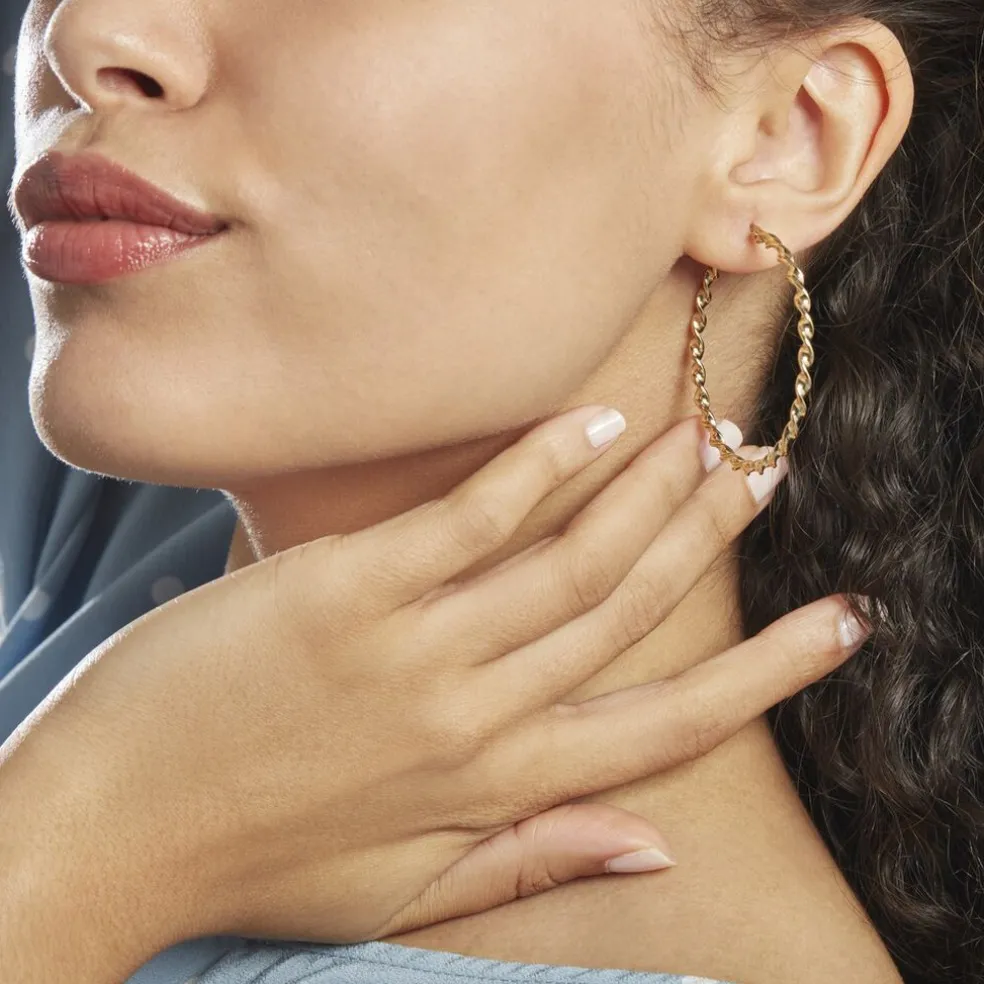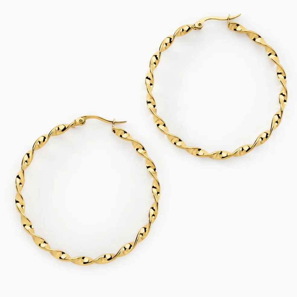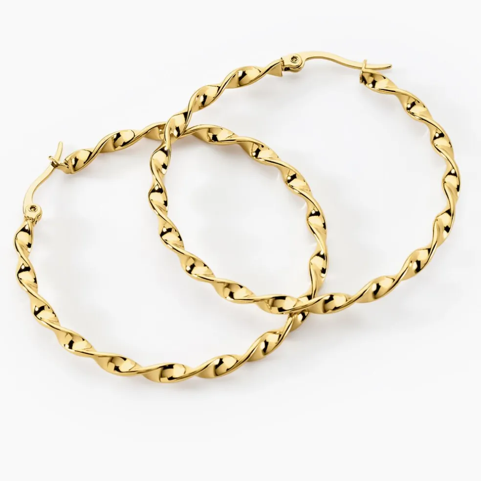 Créoles Acier Inoxydable Jaune Torsadees Largeur 3mm Diametre 40mm