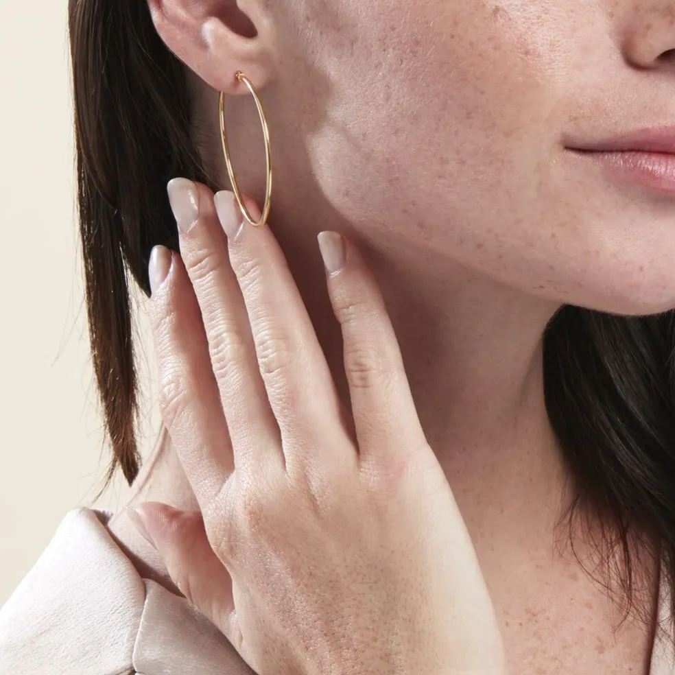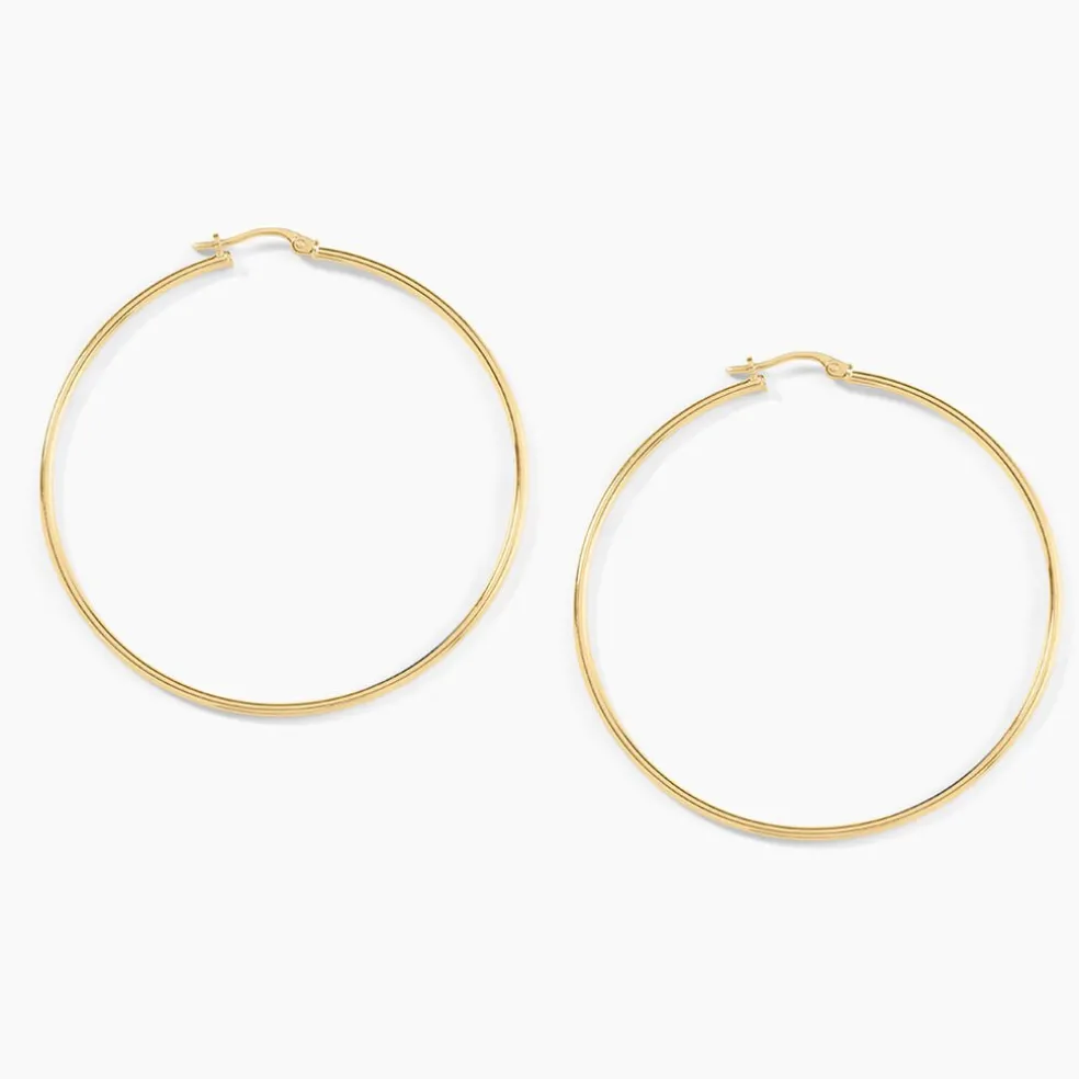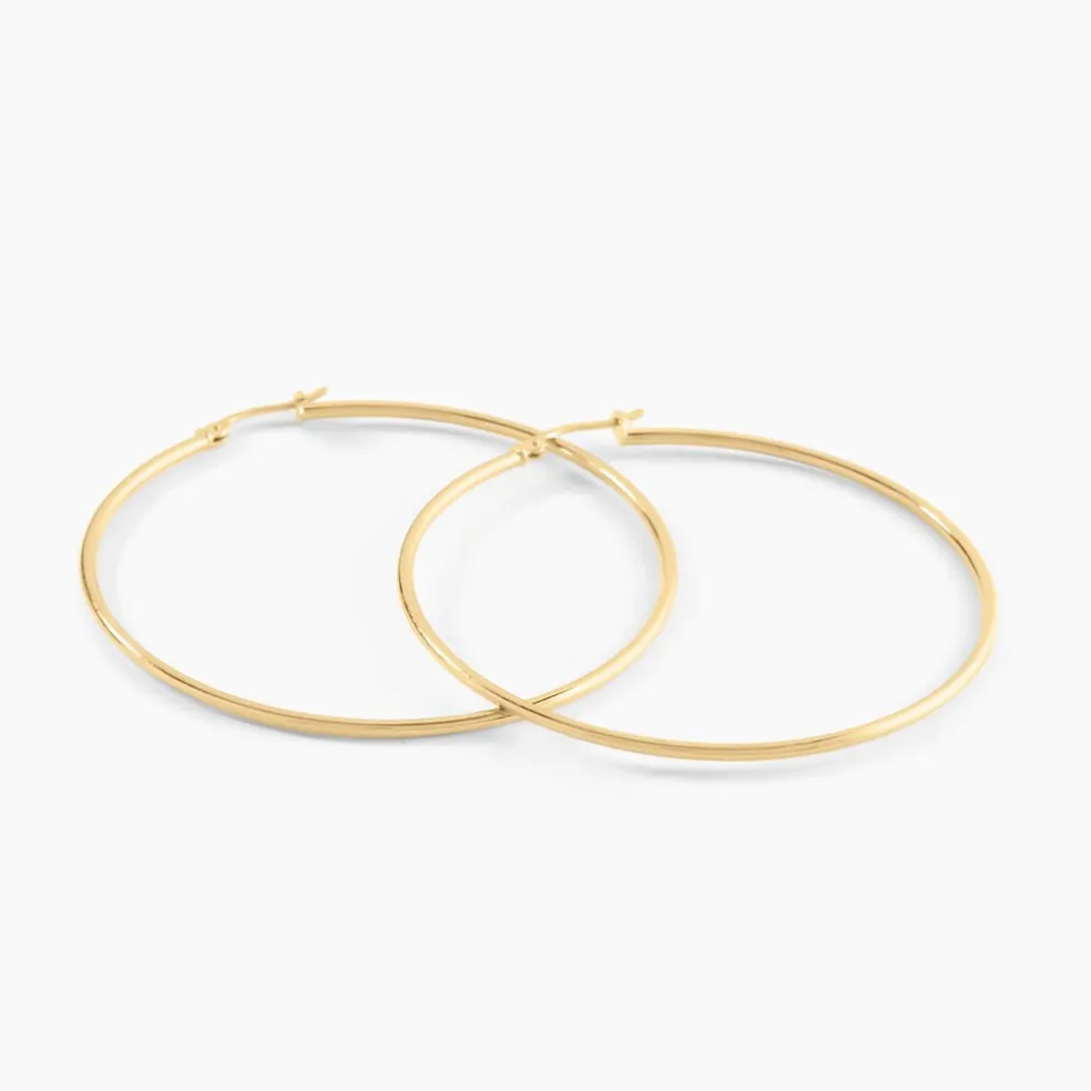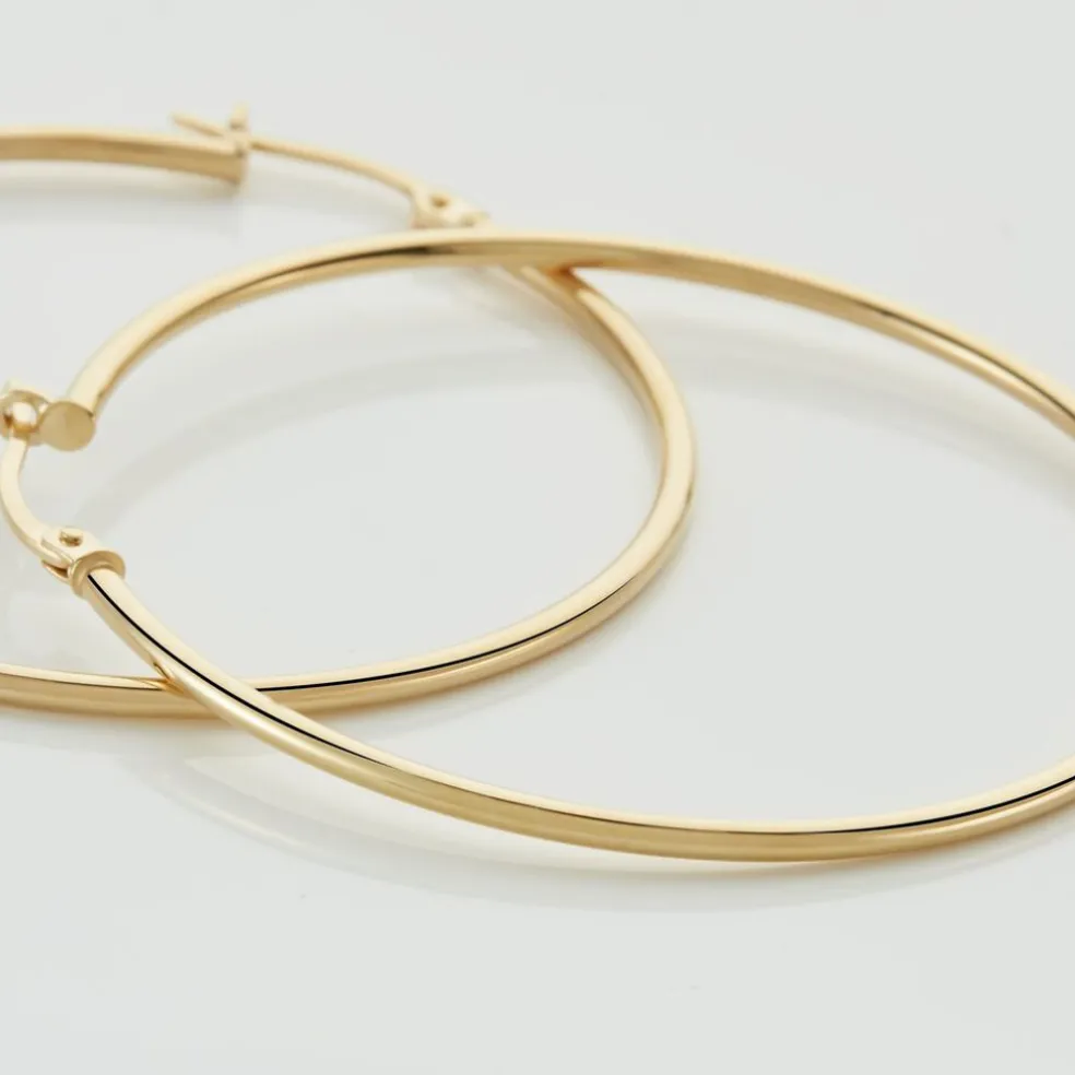 Créoles Or Jaune 375/1000 Fil Rond Lisse Largeur 1.5mm Diamètre 50mm
