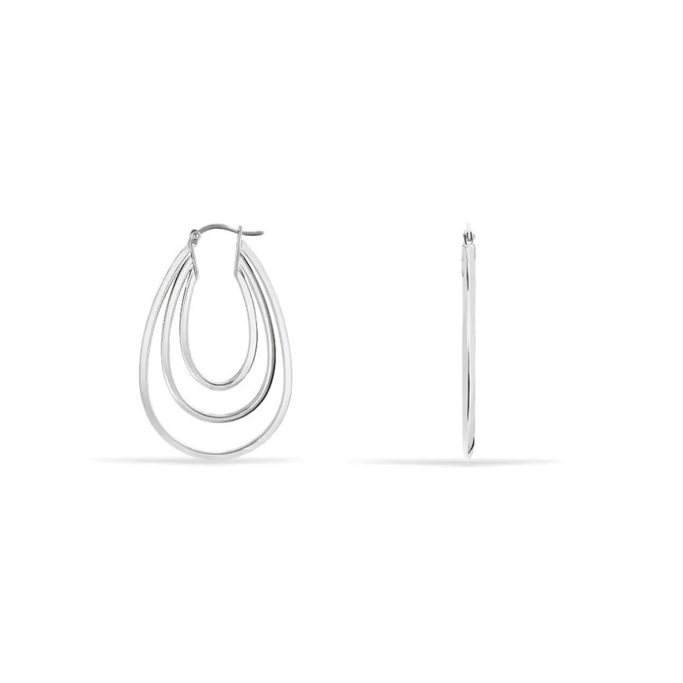 Créoles Acier Inoxydable Blanc Formes Gouttes Triple Rangs Ajoures
