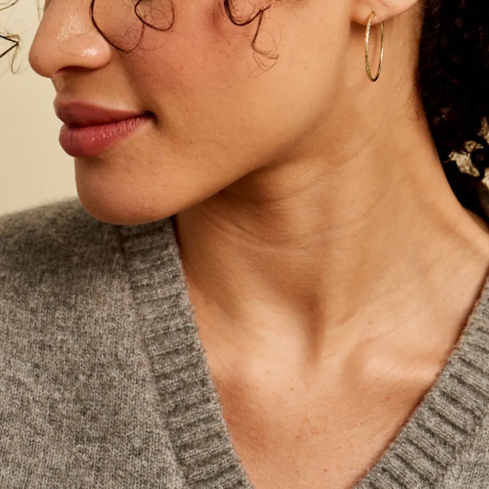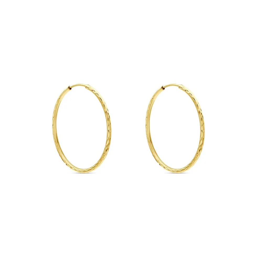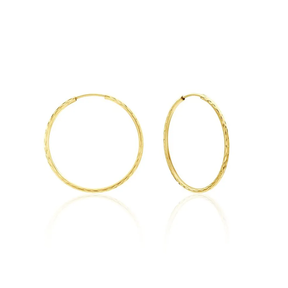 Créoles Or Jaune 375/1000 Flexibles Effet Diamanté Largeur 1.3mm Diametre 25mm