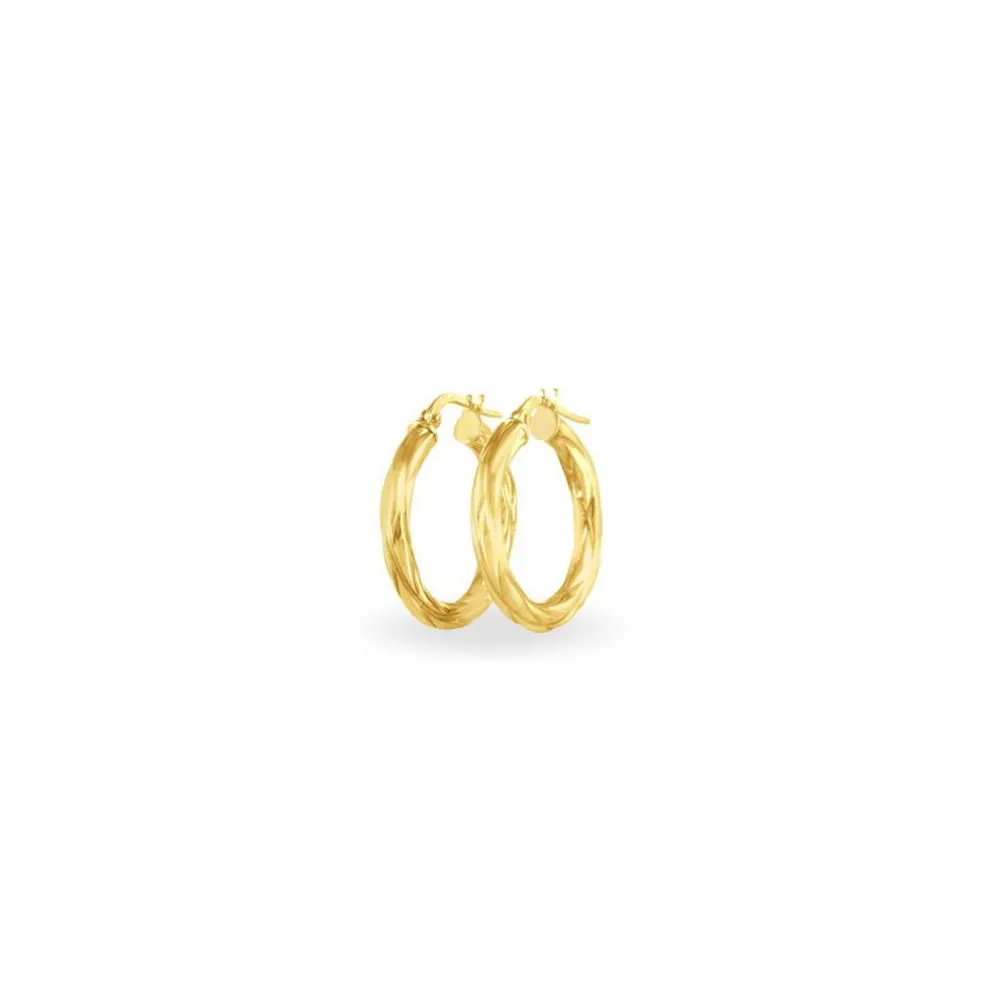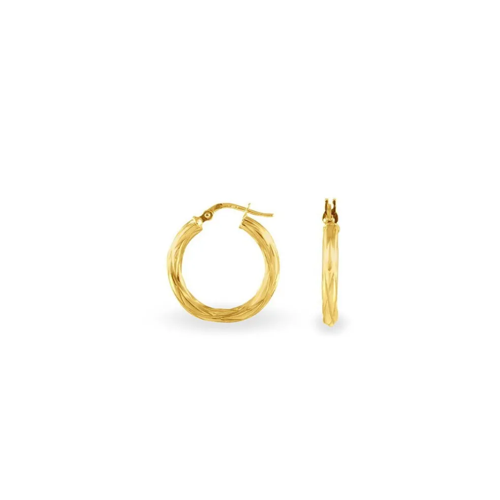 Créoles Or Jaune 375/1000 Fil Rond Effet Diamanté Largeur 3mm Diamètre 15mm