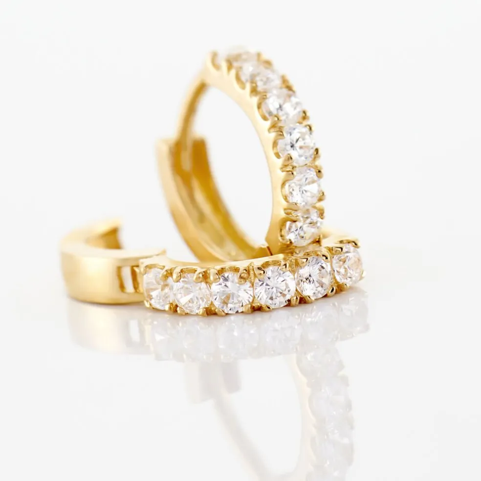 Creoles Or Jaune 375/1000 Serti 4 Griffes Oxydes De Zirconium Blancs