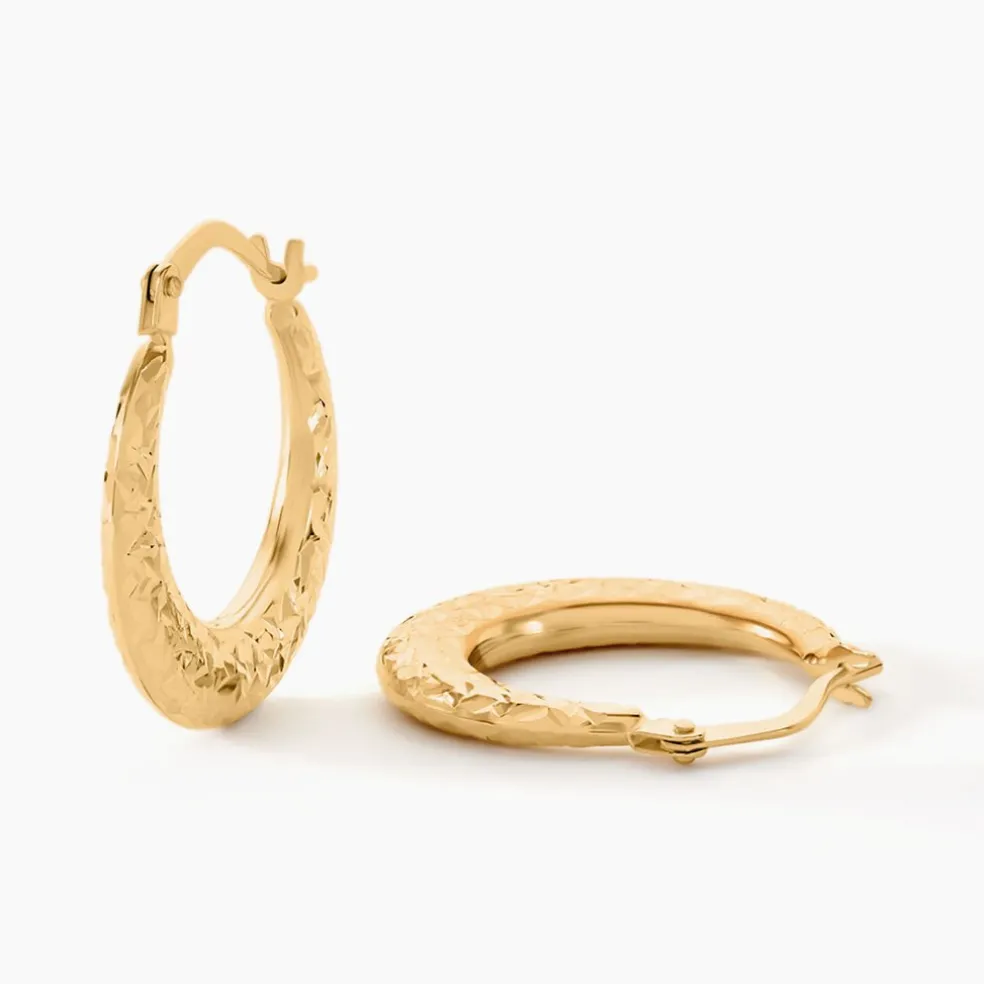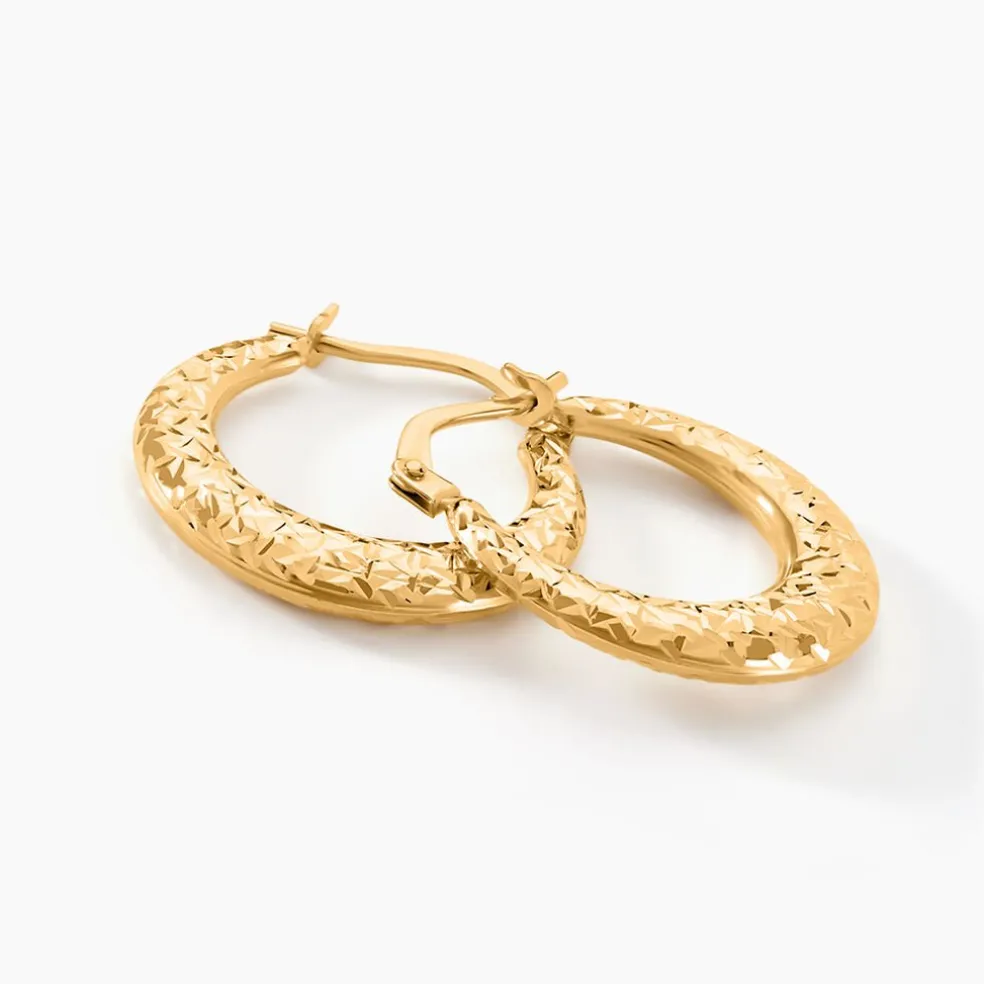 Creoles Or Jaune 750/1000 Rondes Fil Bombe Effet Diamante Diamètre 18mm