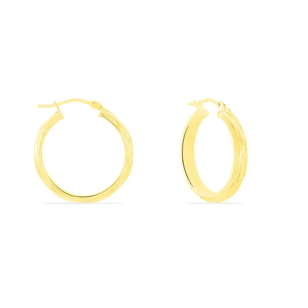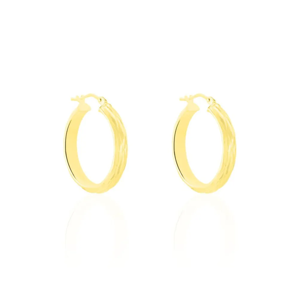 Créoles Or Jaune 375/1000 Fil Demi Jonc Effet Diamanté Largeur 4mm Diamètre 20mm
