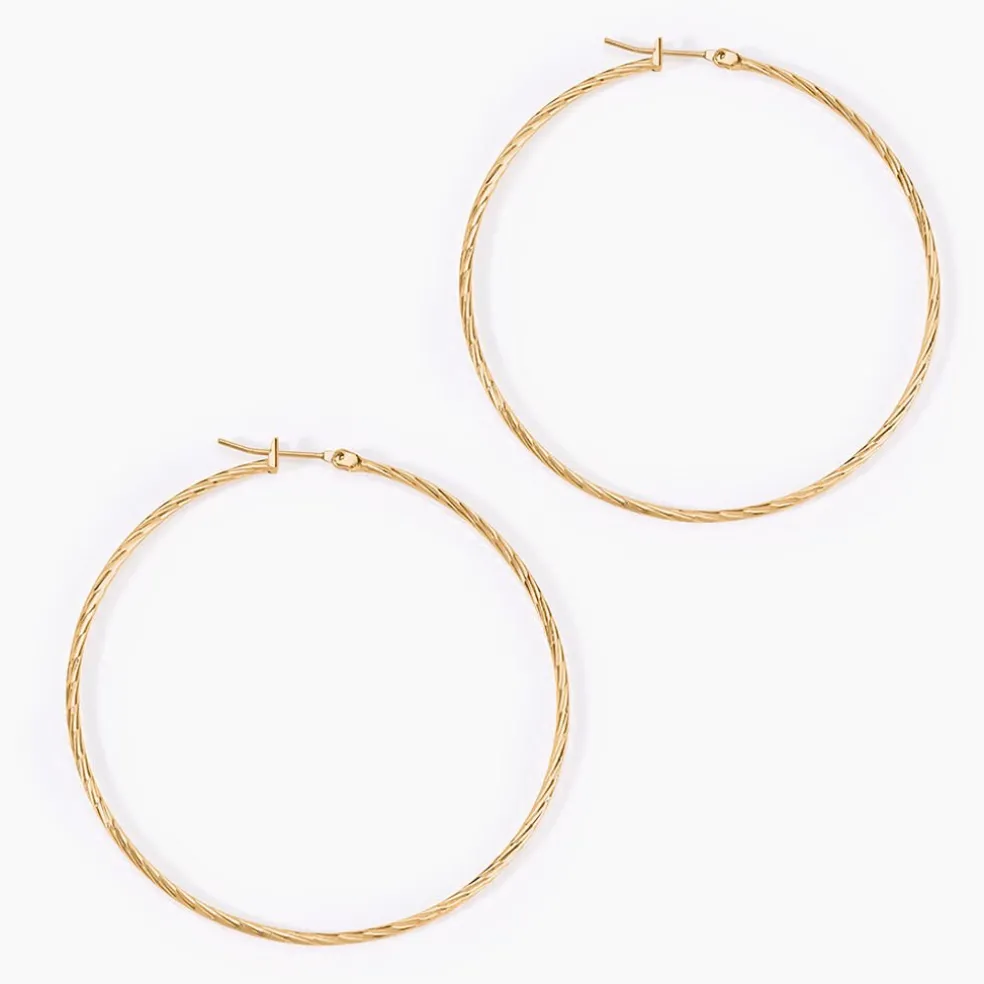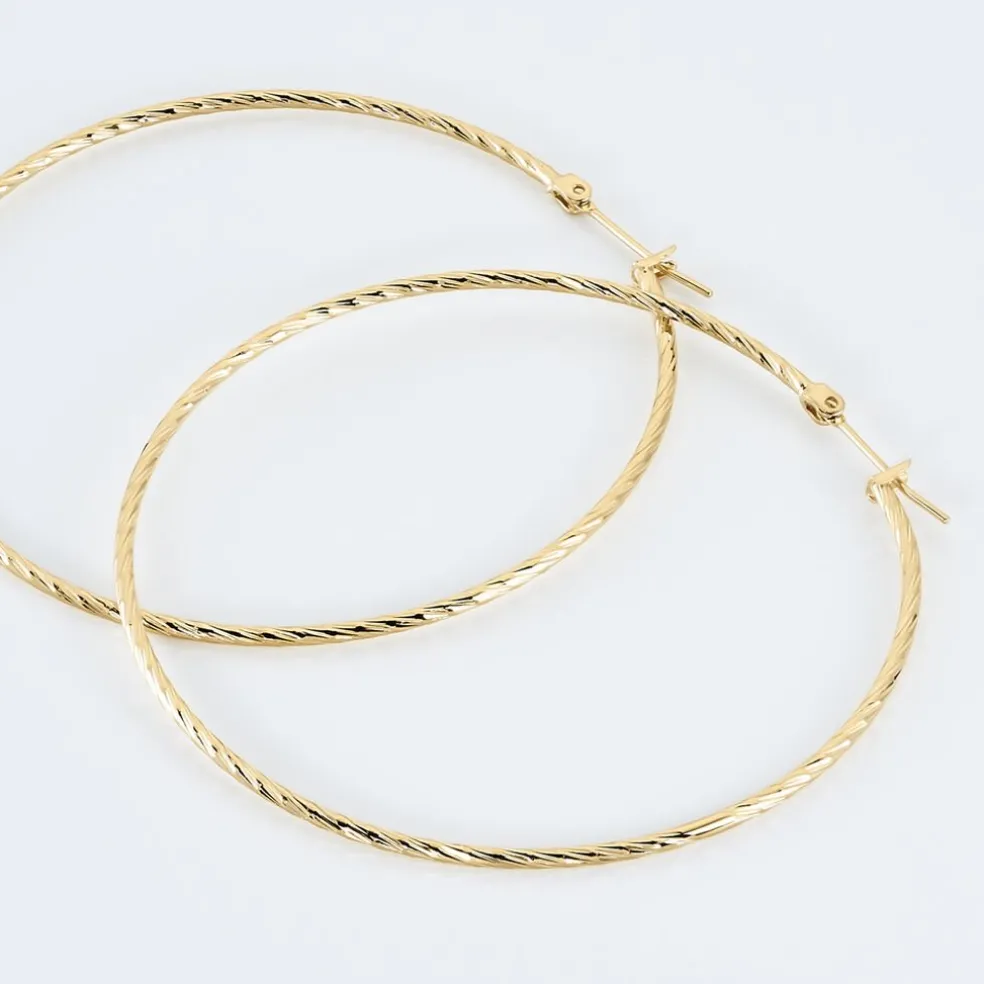 Creoles Plaqué Or Jaune Effet Diamante Diametre 60mm