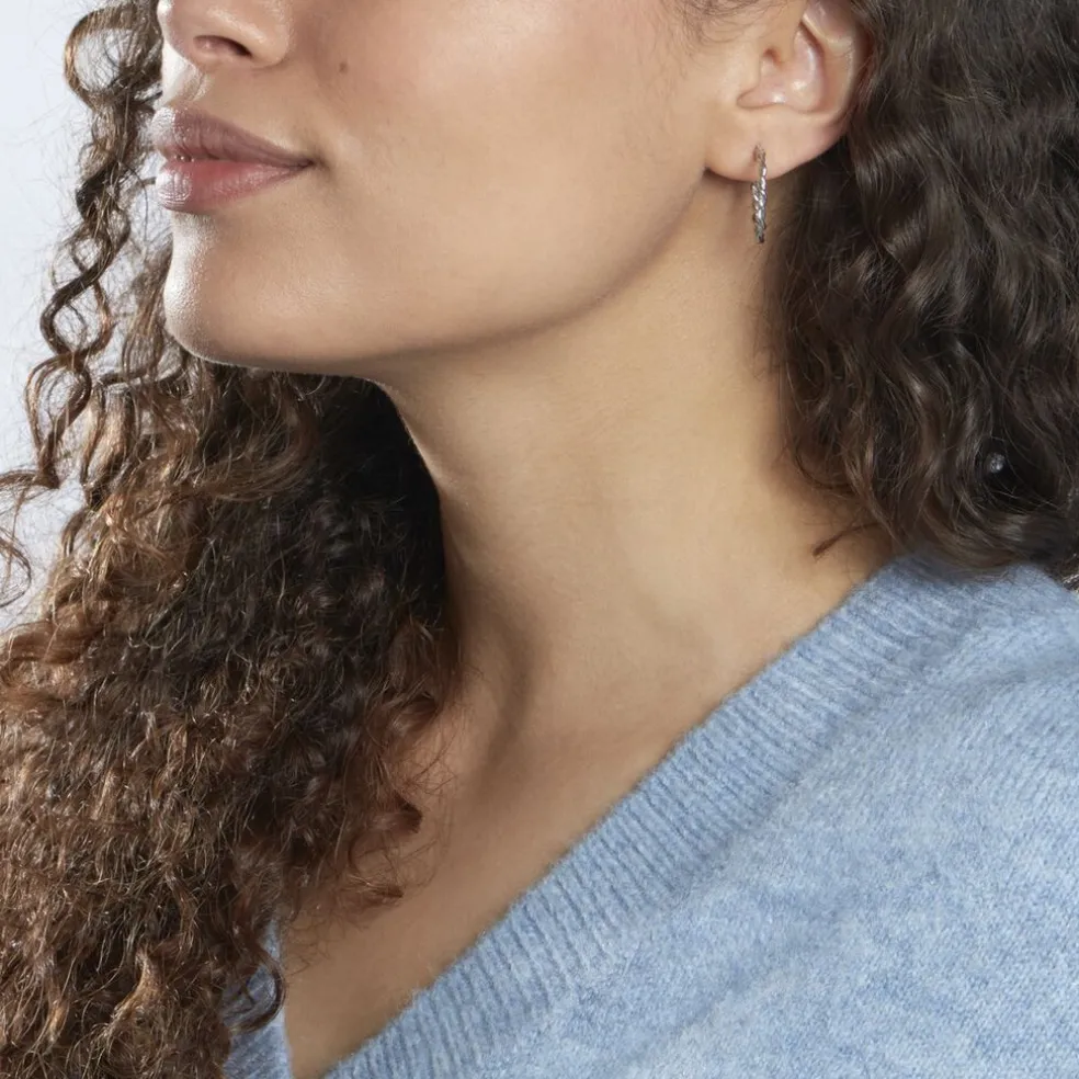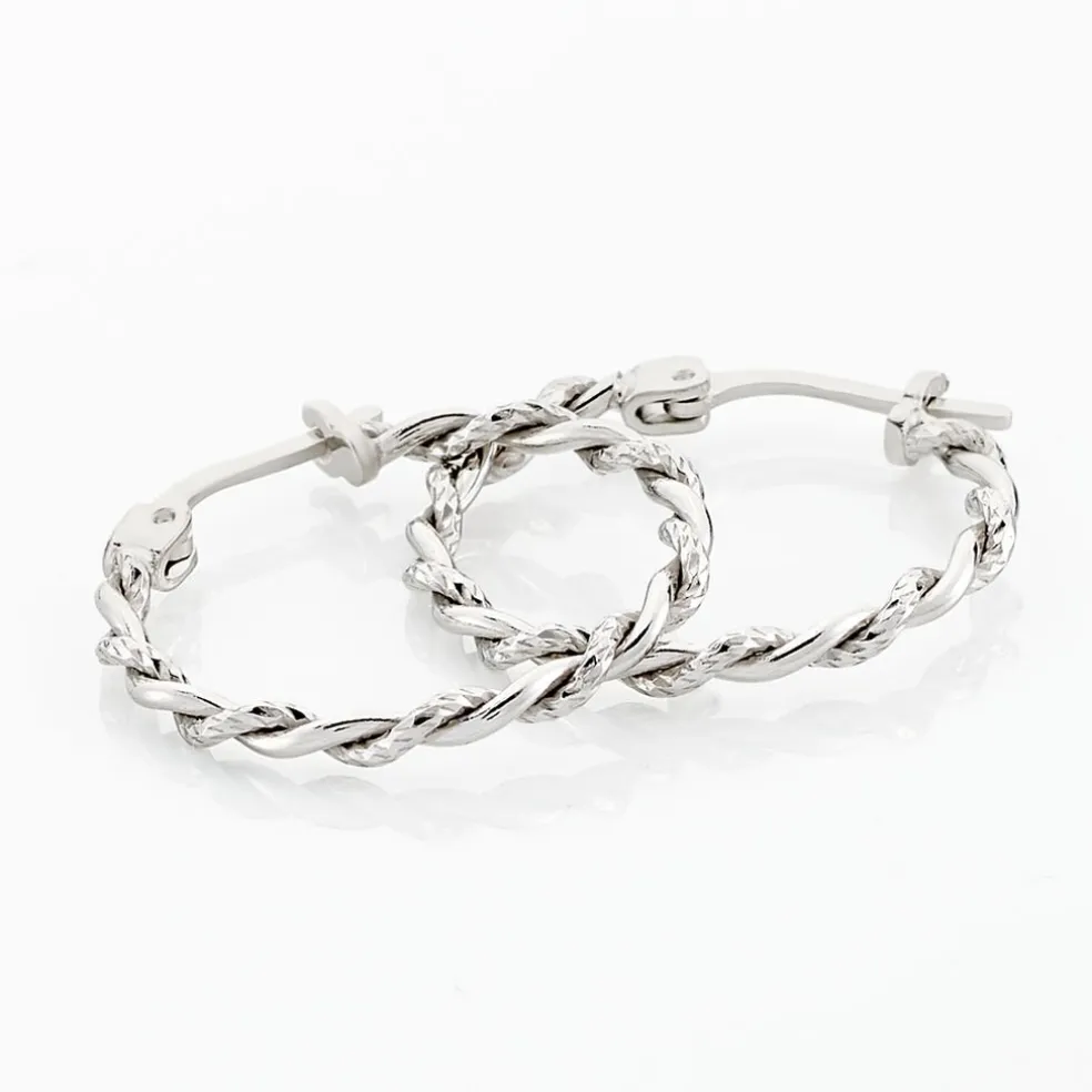 Créoles Argent Blanc 925/1000 Effet Torsade Fil Diamante Et Fil Lisse Largeur 2mm Diametre 17mm