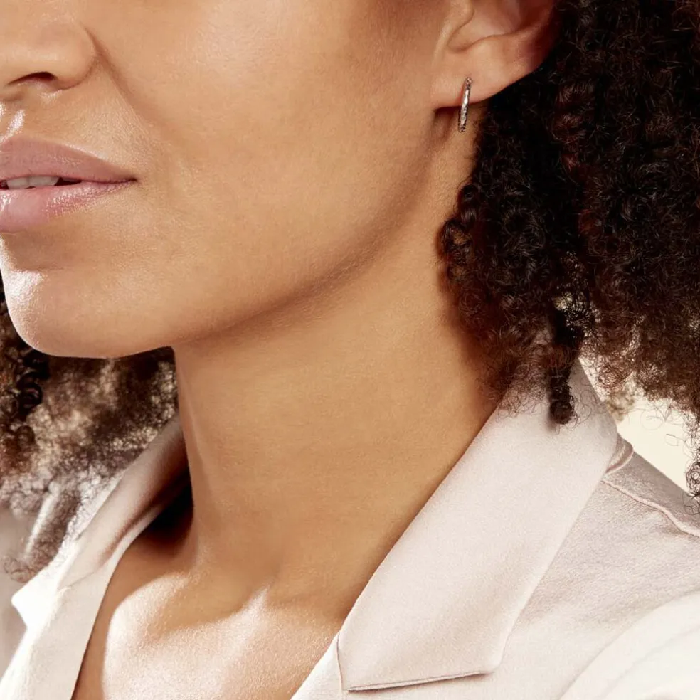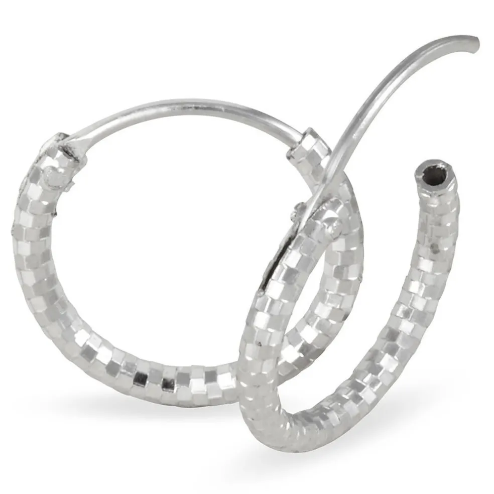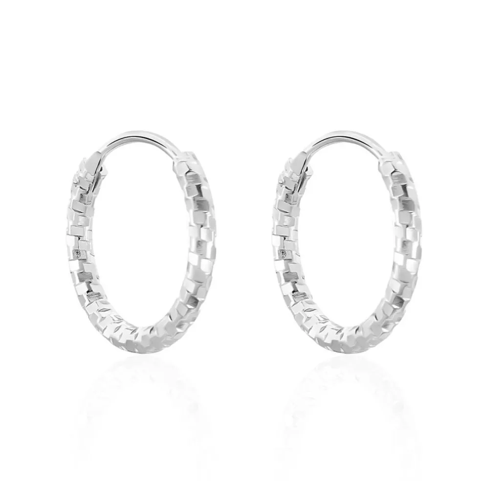 Créoles Argent Blanc 925/1000 Diamantees Largeur 2mm Diametre 12mm