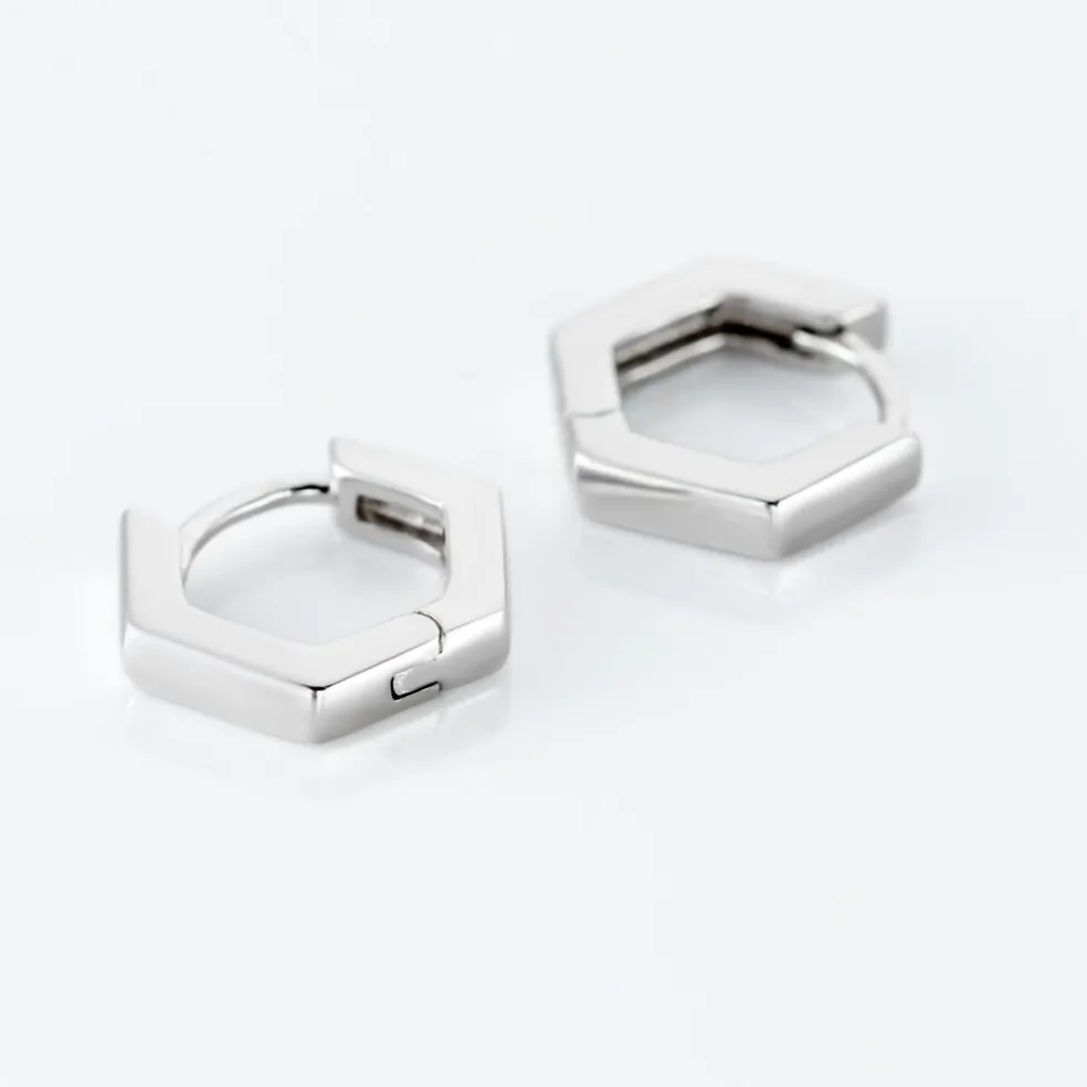 Créoles Argent Blanc 925/1000 Octogonales Diamètre 10mm