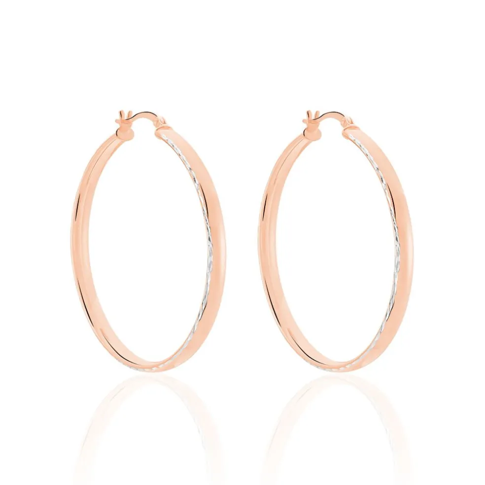 Créoles Argent Rose 925/1000 Bords Diamantes Largeur 4.1mm Diametre 40mm