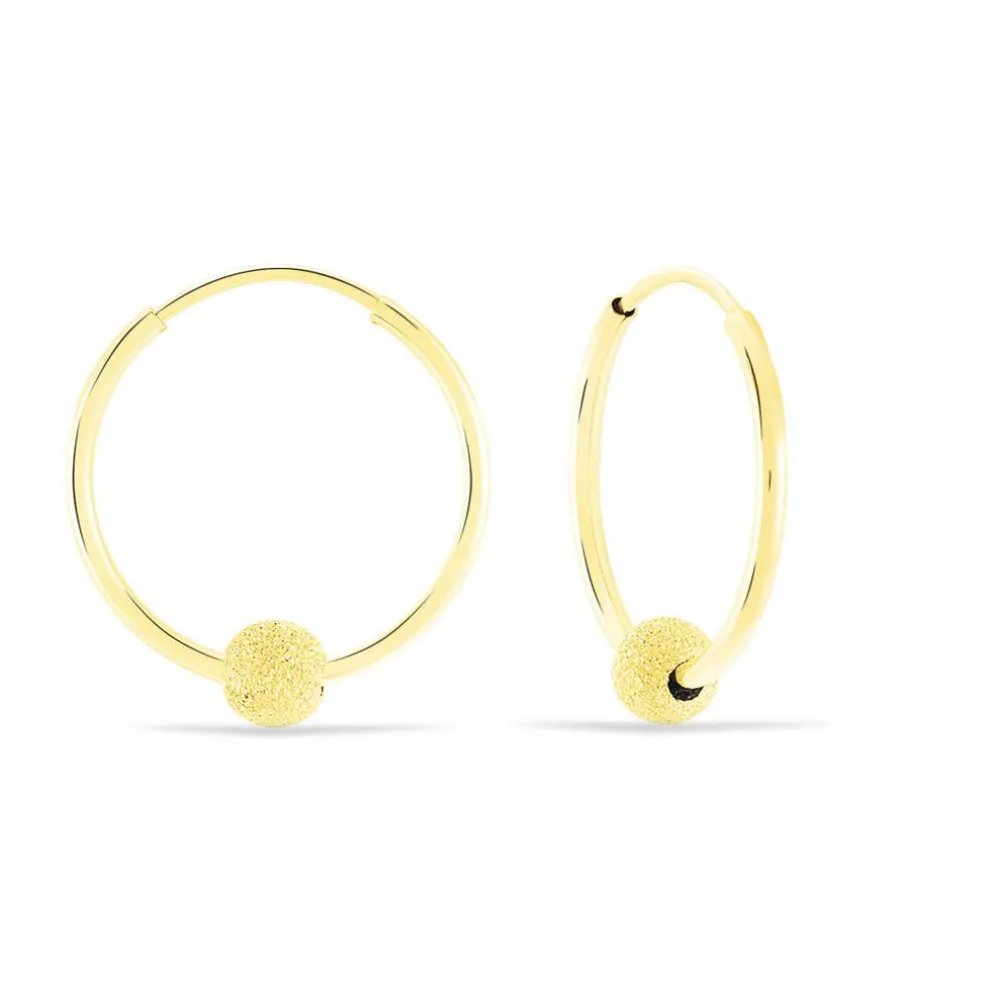 Créoles Or Jaune 375/1000 Boules Effet Sablé Fil Flexible Lisse Largeur 1.2mm Diamètre 16mm