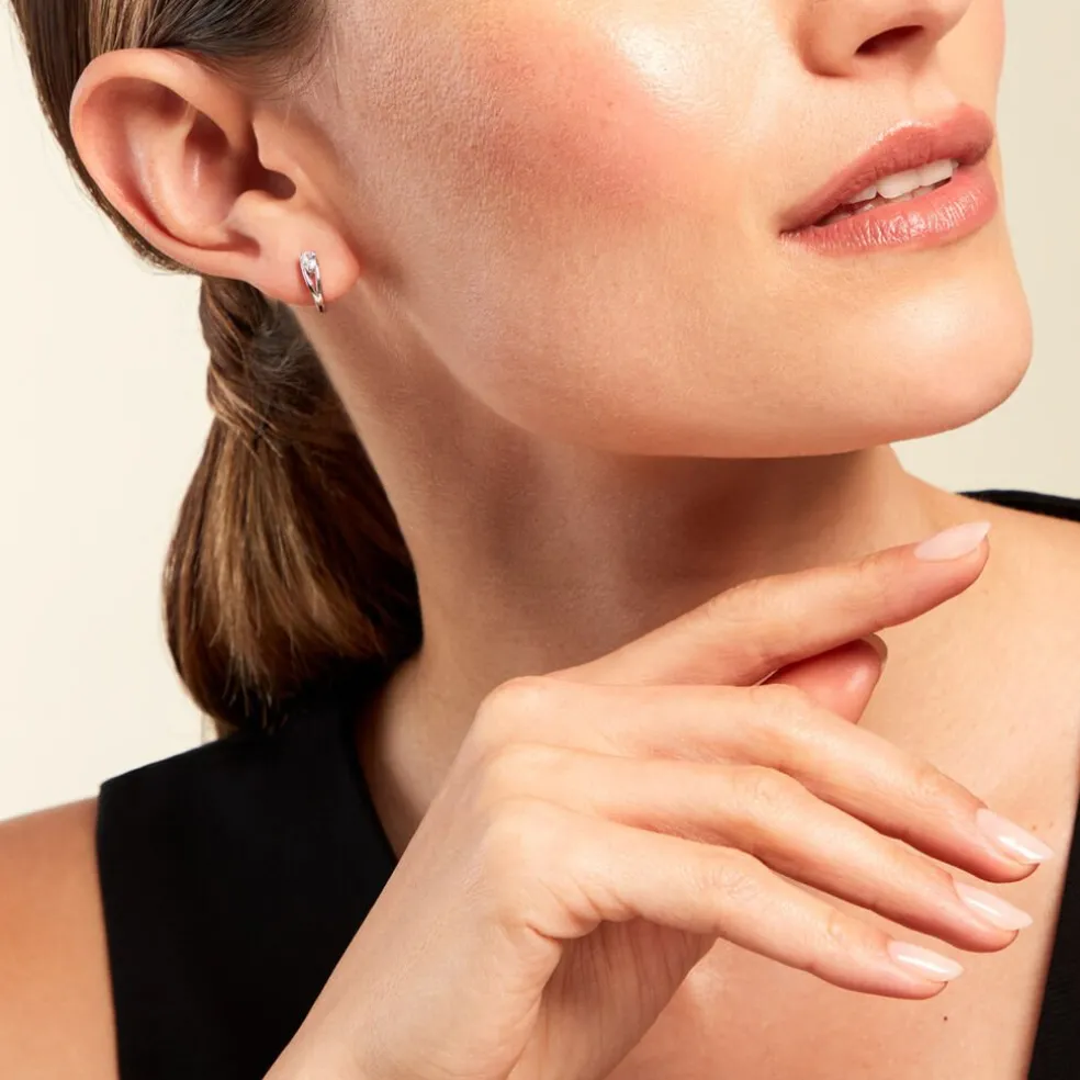 Créoles Argent Blanc 925/1000 Oxydes De Zirconium Formes Poires Serti Griffes Diamètre 8mm