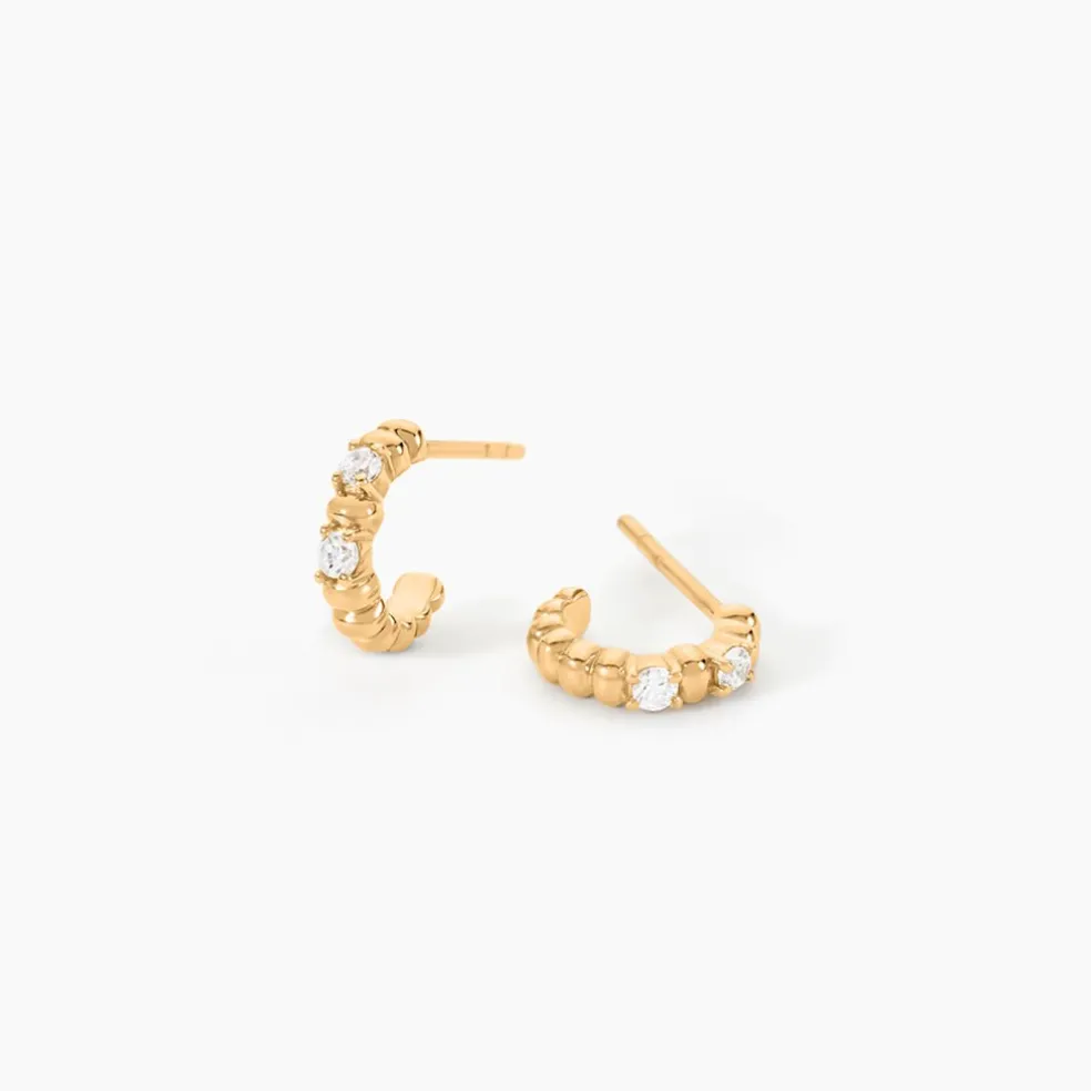 Créoles Plaqué Or Jaune Boules Et Oxydes De Zirconium Serti 4 Griffes Diamètre 10.5Mm