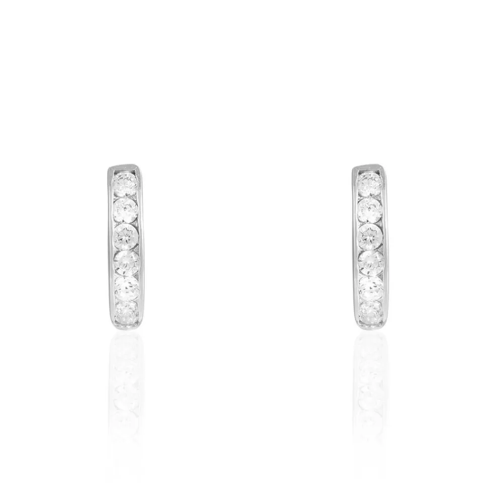 Boucles D’oreilles Demi Creole Argent Blanc 925/1000 Avec Oxydes De Zirconium