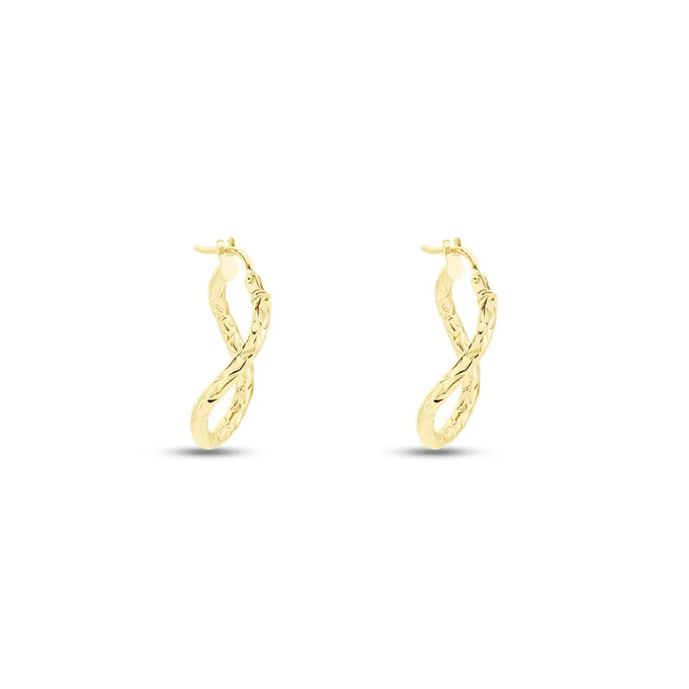 Creoles Or Jaune 375/1000 Ovales Fil Vrille Effet Diamante Largeur 2mm Diametre 22.2mmx15.44mm