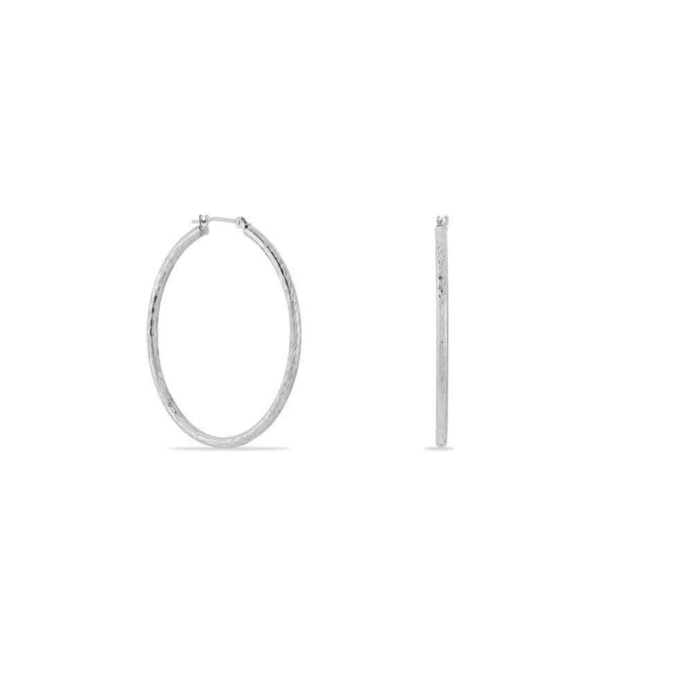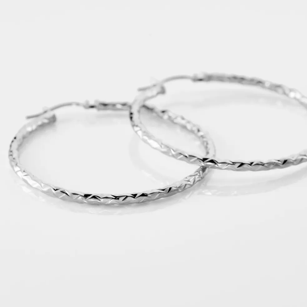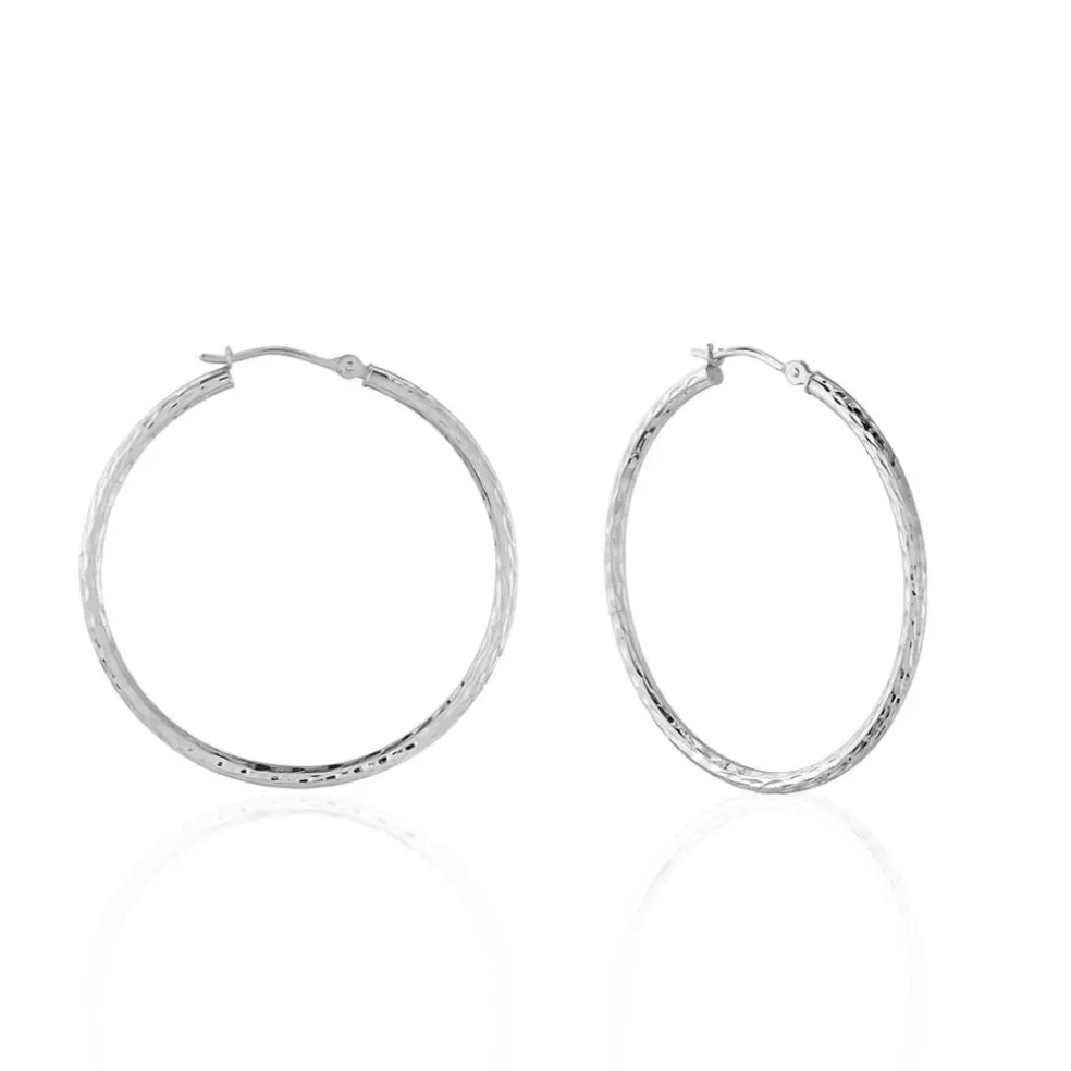 Créoles Or Blanc 375/1000 Fil Rond Effet Diamanté Largeur 2mm Diamètre 35mm
