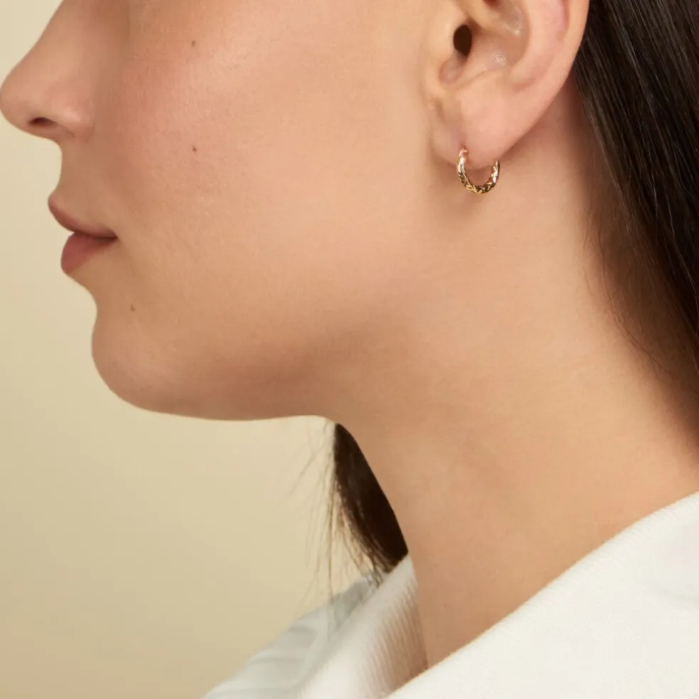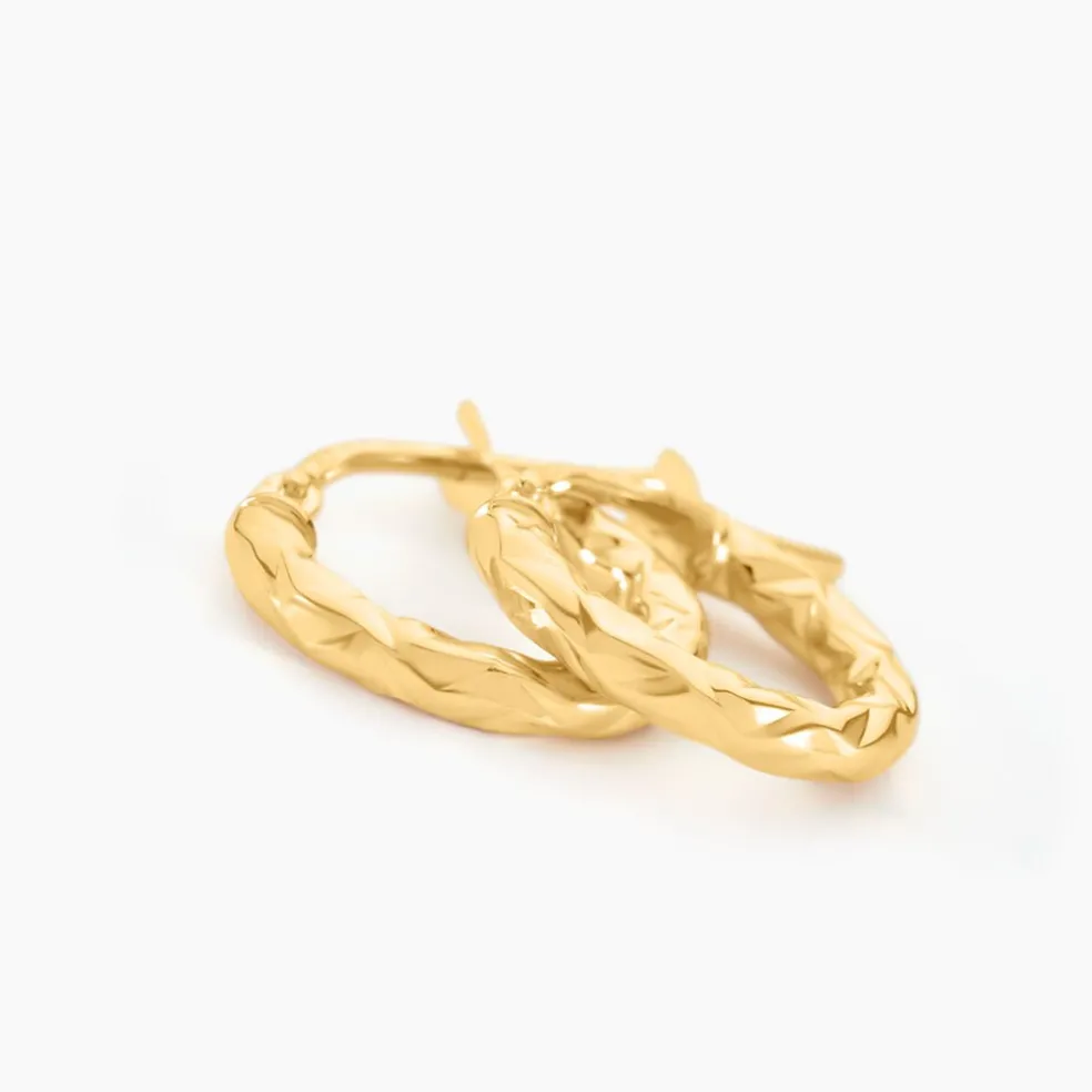 Créoles Or Jaune 375/1000 Fil Rond Diamante Epaisseur 2mm Diamètre 8mm