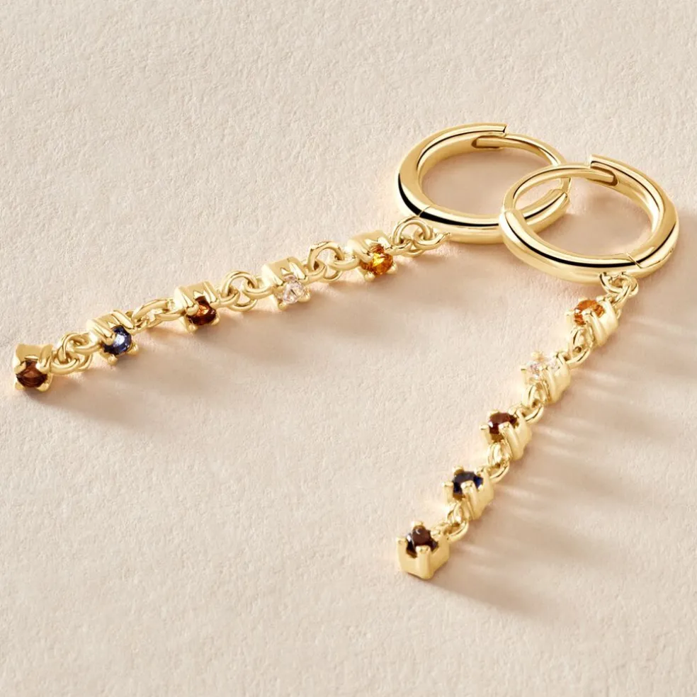 Créoles Plaqué Or Rivière Pierres De Synthèses Multicolores Diamètre 9mm