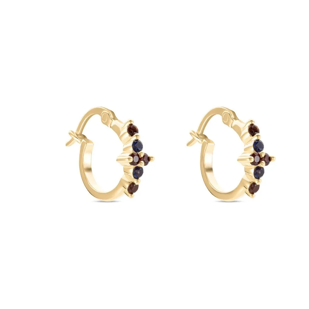 Créoles Plaqué Or Fleurs Pierres De Synthèses Bleues Et Marrons Diamètre 13mm