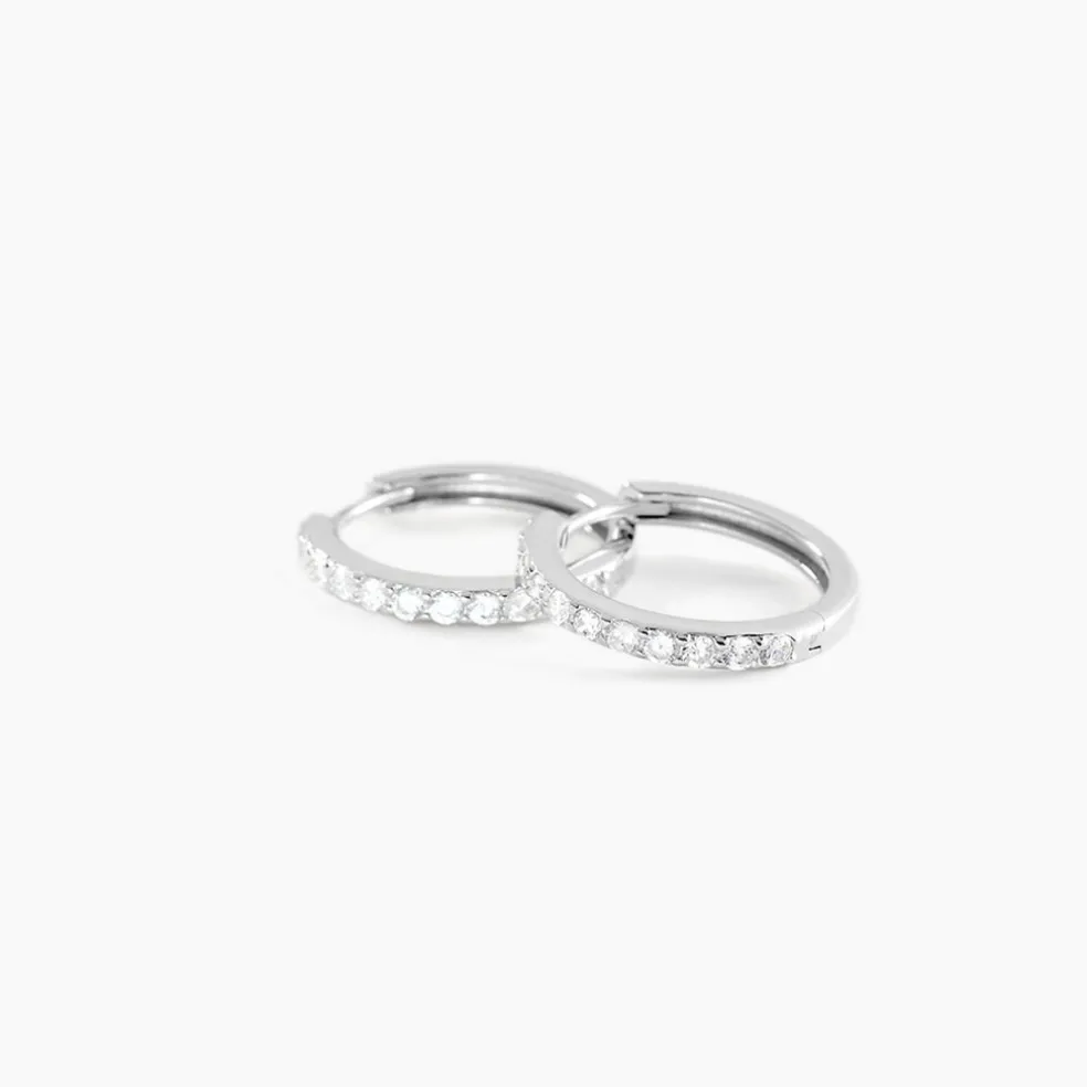 Créoles Classique Argent Blanc 925/1000 Oxydes De Zirconium Serti Griffes Diamètre 20mm