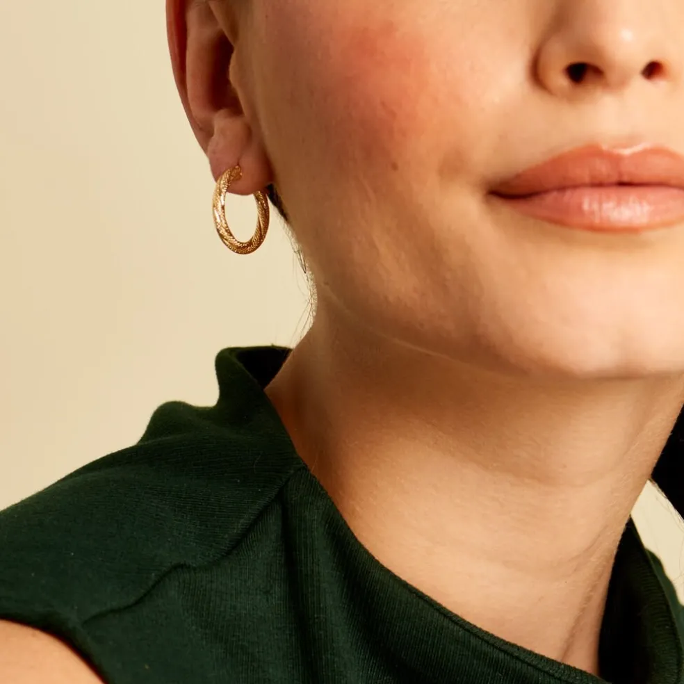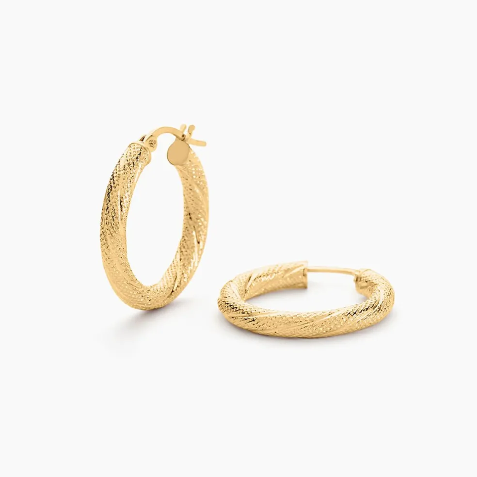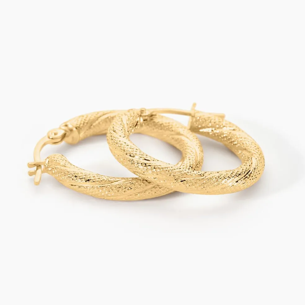 Creoles Or Jaune 375/1000 Fil Rond Torsadé Effet Piqueté Diamètre 15mm