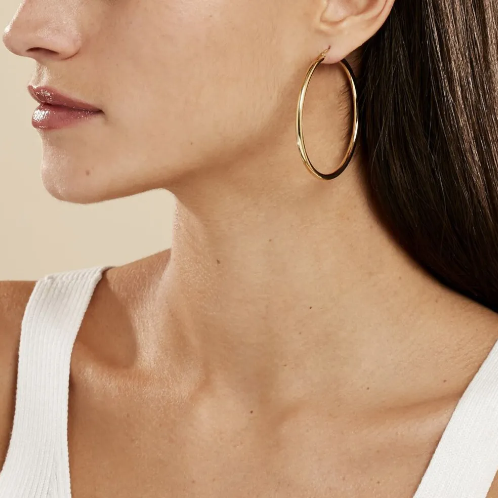 Créoles Acier Inoxydable Jaune Fil 3mm Diametre 55mm