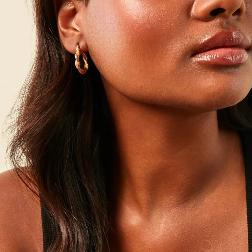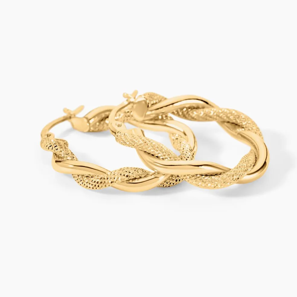Creoles Or Jaune 750/1000 ‘Deniece’ Fil Torsade Largeur 3,8Mm Diametre 15Mm