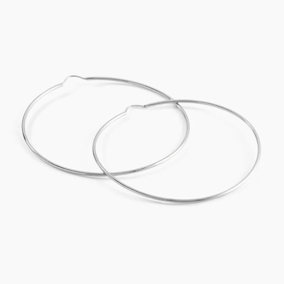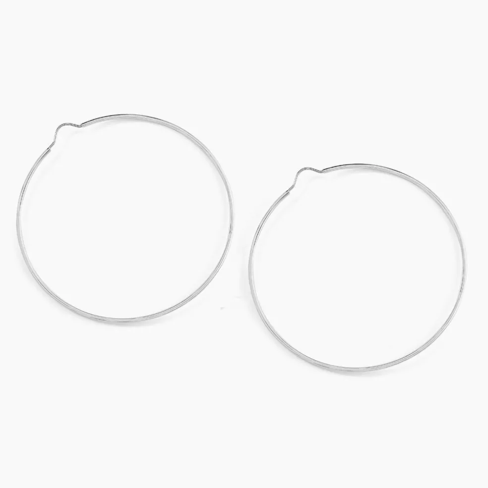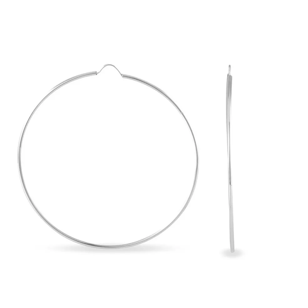 Créoles Or Blanc 375/1000 Fil Flexible Lisse Largeur 1.2mm Diamètre 55mm