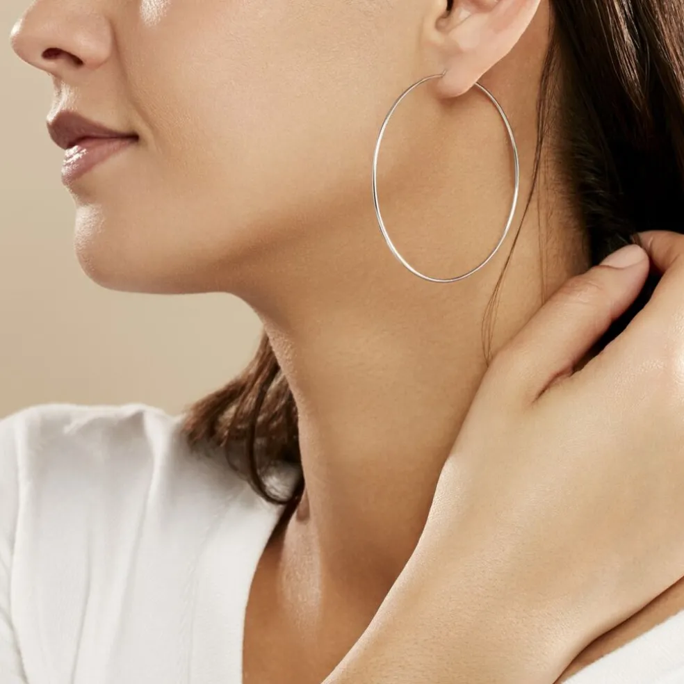 Créoles Or Blanc 375/1000 Fil Flexible Lisse Largeur 1.2mm Diamètre 65mm