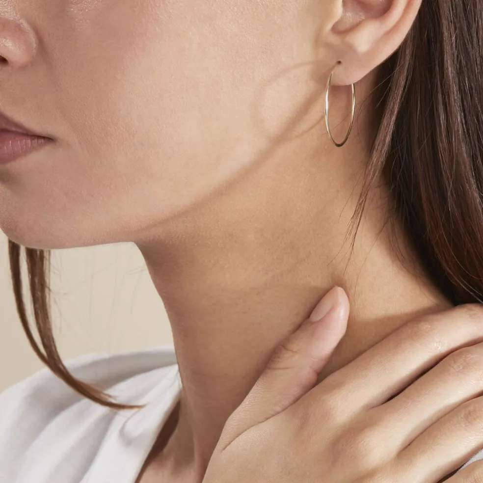 Créoles Or Jaune 375/1000 Fil Flexible Lisse Largeur 1.2mm Diamètre 25mm