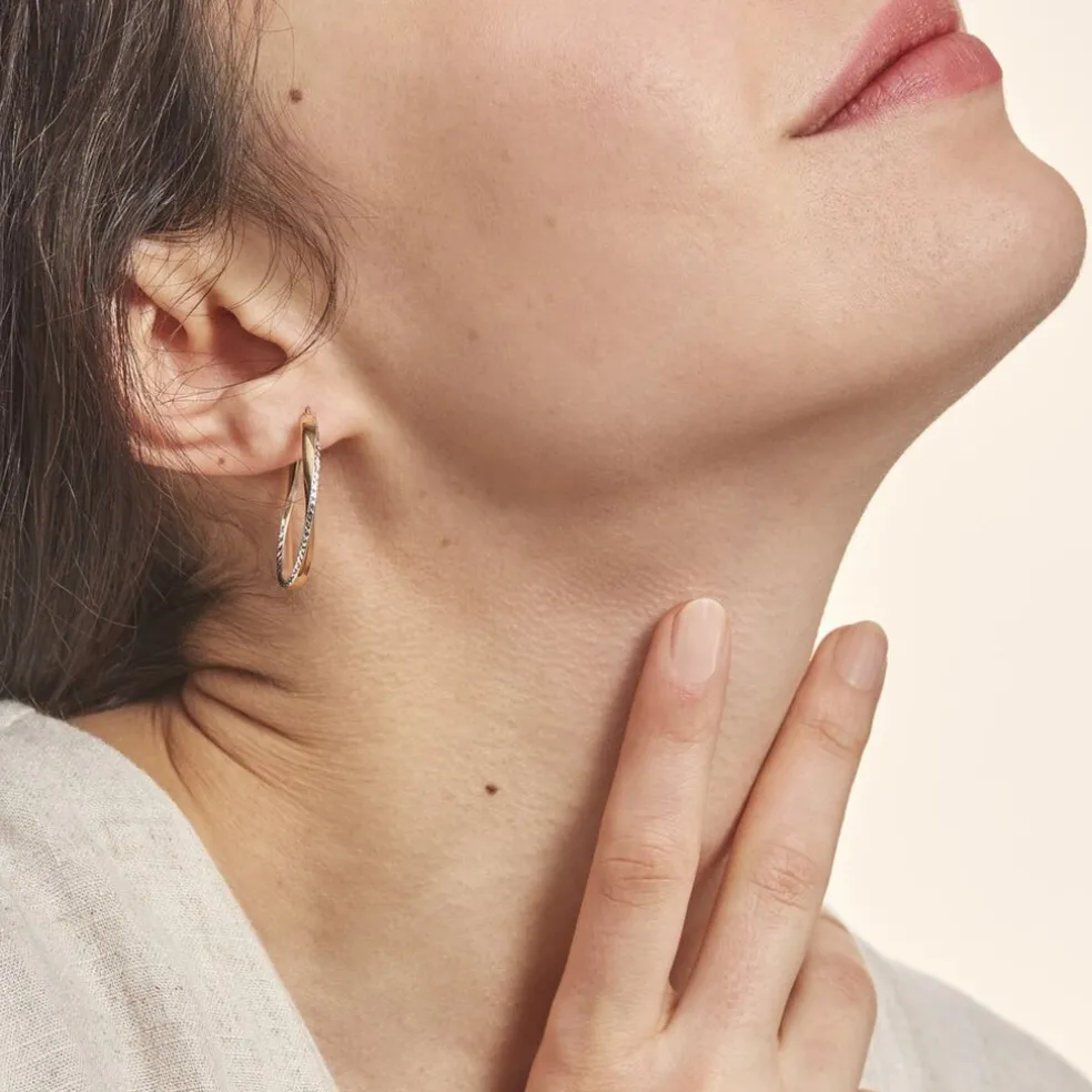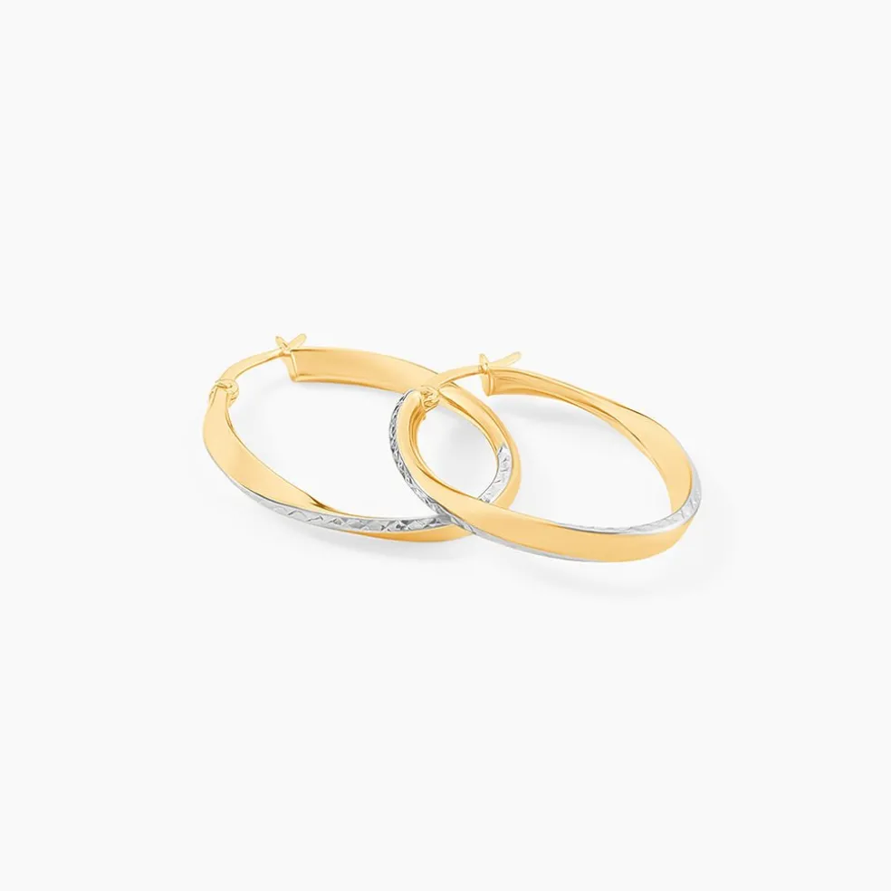 Créoles Or Jaune 375/1000 Fil Vrillé Effet Diamanté Largeur 2.9mm Diamètre 32.2mm