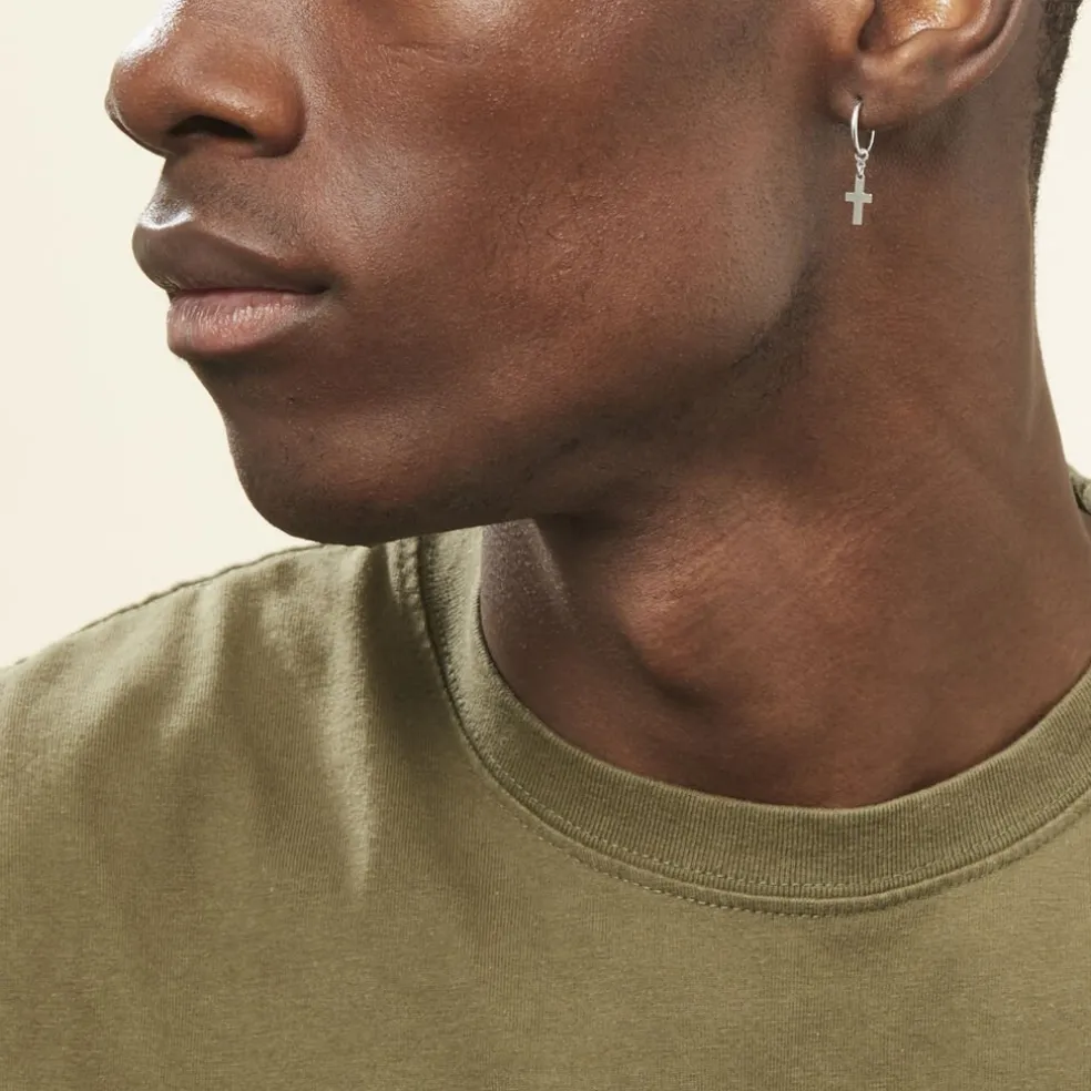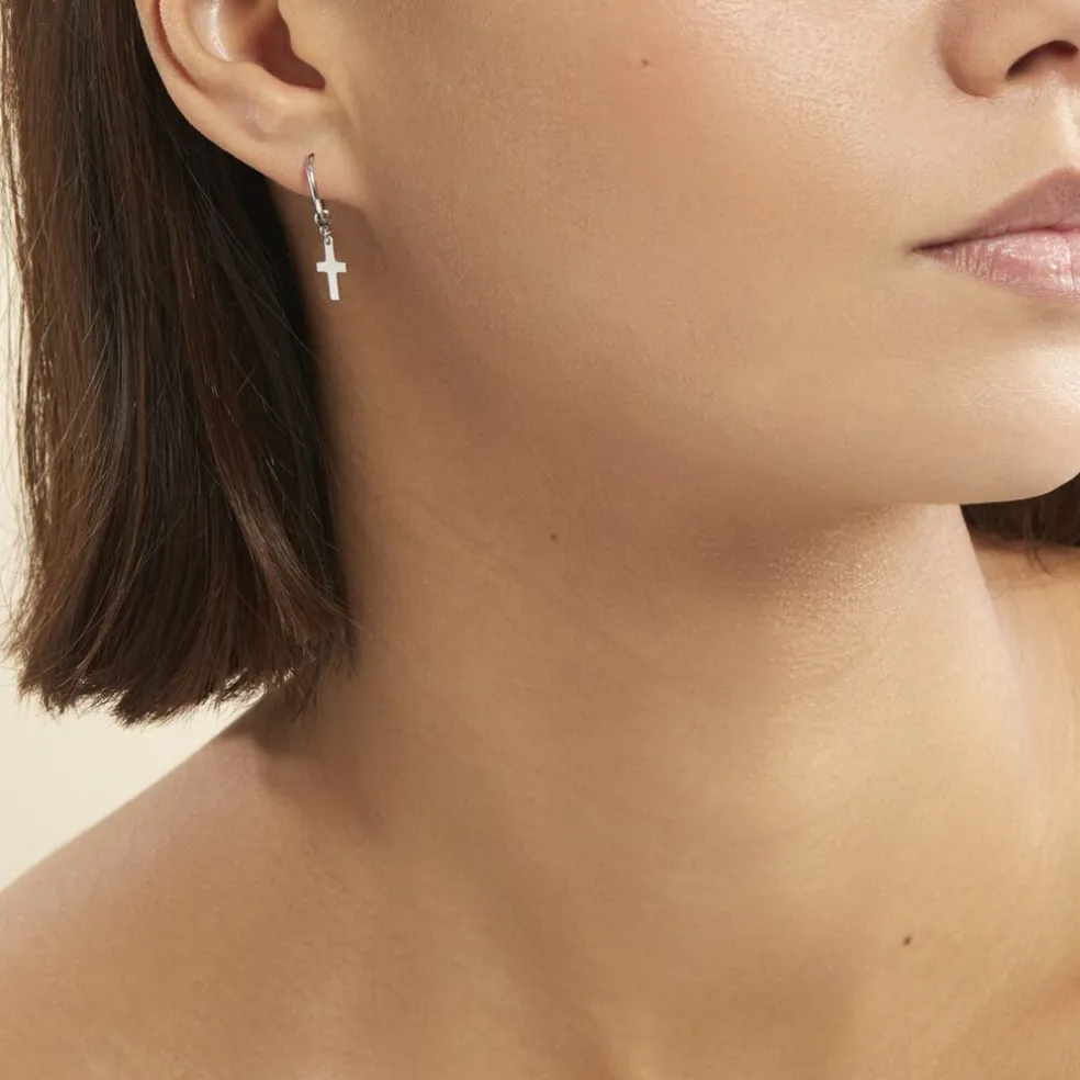 Creoles Argent Blanc 925/1000 Pampilles Motifs Croix Diametre 12mm