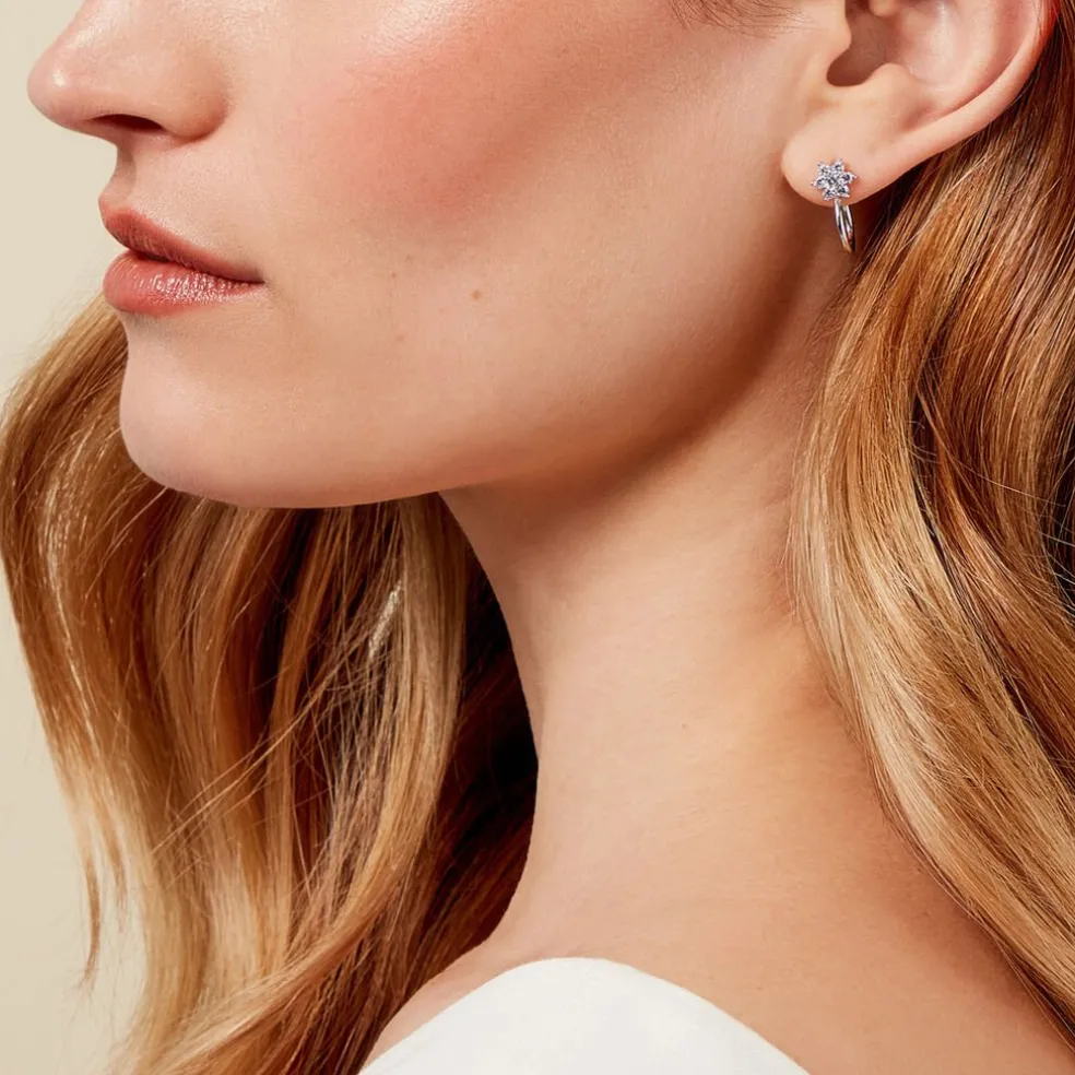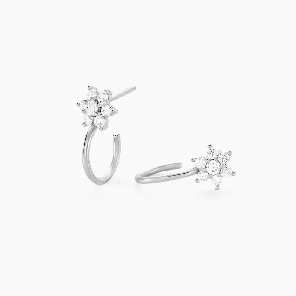Créoles Argent Blanc 925/1000 Fleurs Oxydes De Zirconium Diamètre 12mm