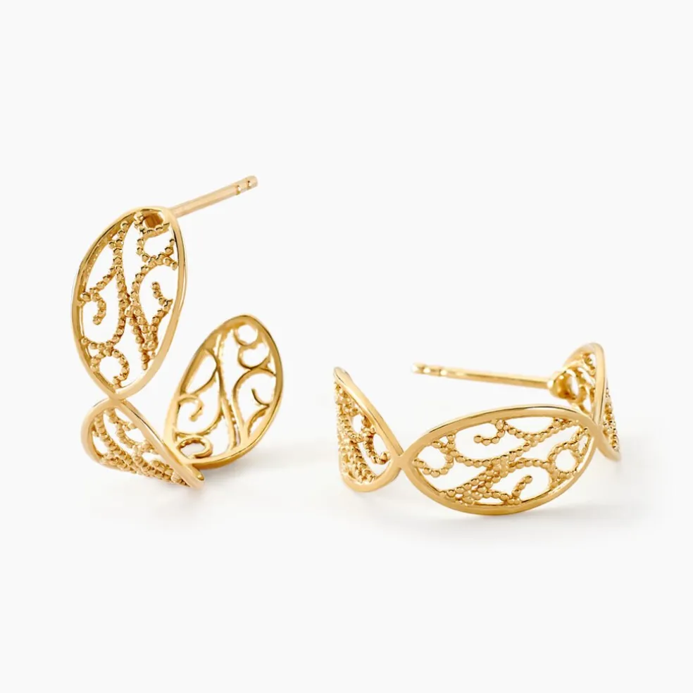 Demi Creoles Or Jaune 375/1000 Filigrane Largeur 8mm Diametre 18mm