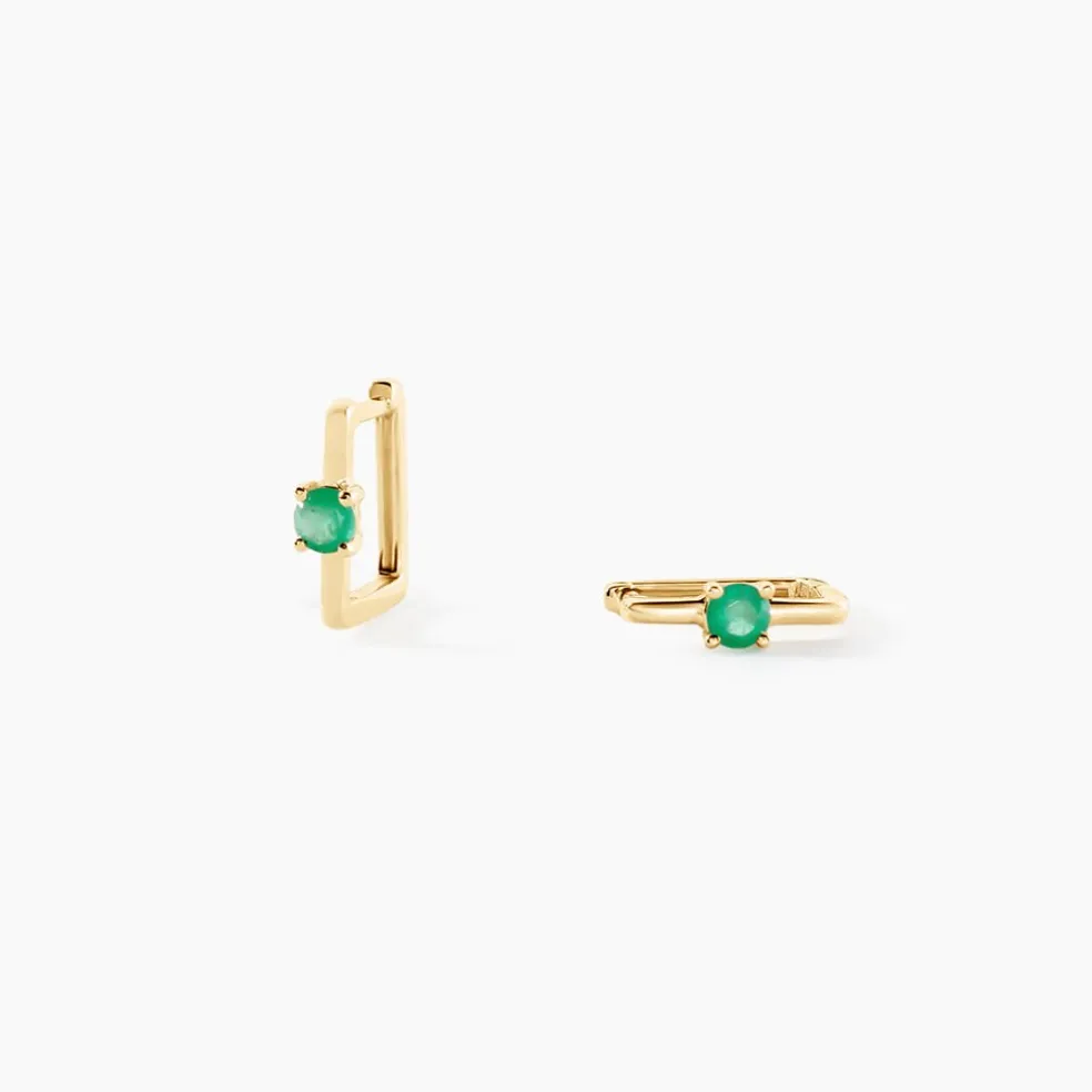 Creoles Or Jaune 375/1000 Carre Avec 1 Emeraude Ronde 0.24cts Serti Griffes