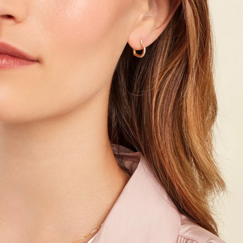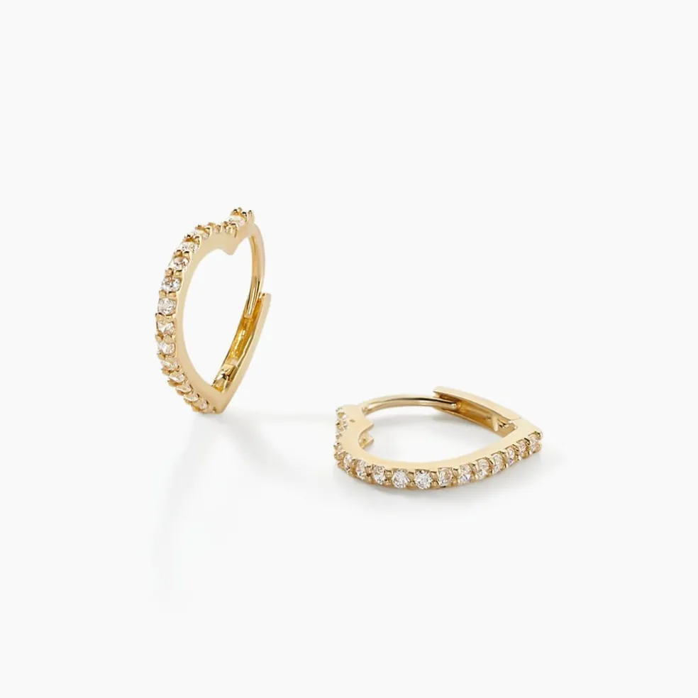 Créoles Or Jaune 375/1000 C艙ur Oxyde De Zirconium Serti Griffes