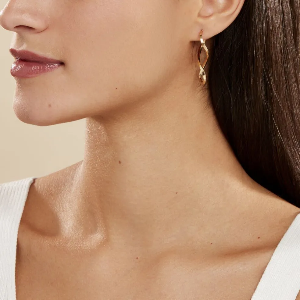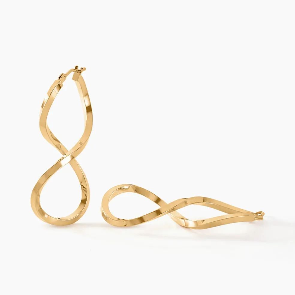 Créoles Or Jaune 375/1000 Forme Huit Fil Triangle Lisse Largeur 2mm Diamètre 38×15.5mm