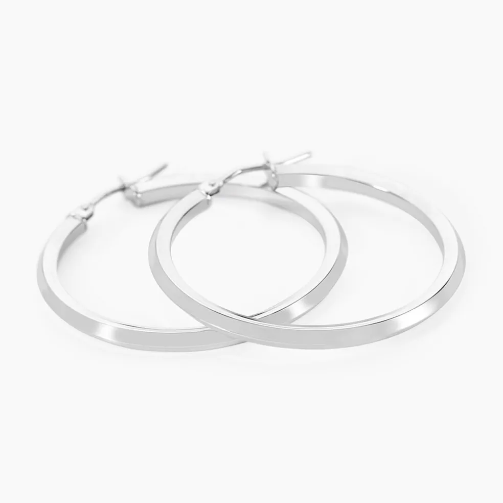 Créoles Or Blanc 375/1000 Fil Triangle Lisse Largeur 2mm Diamètre 25mm