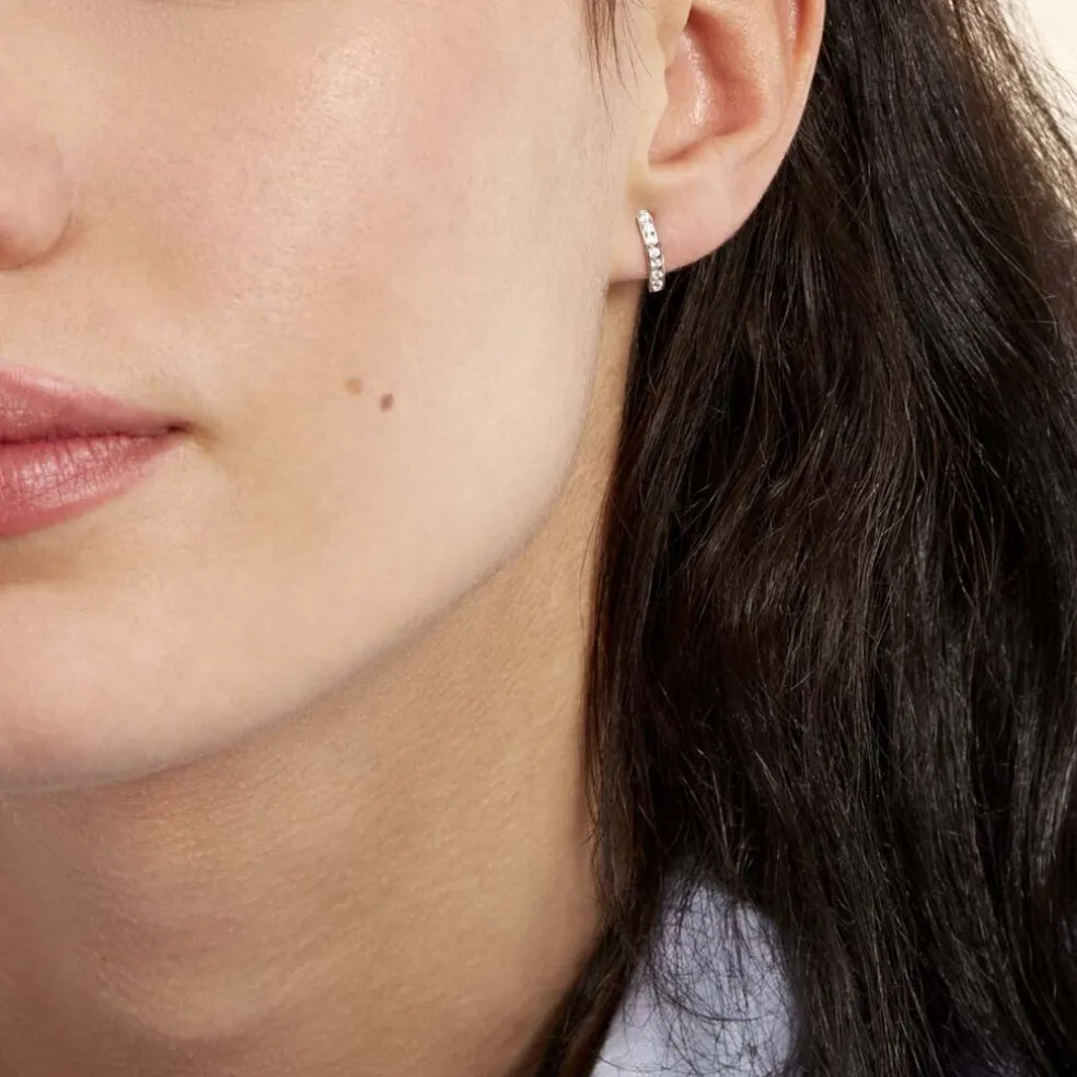 Créoles Or Blanc 375/1000 Et Oxydes De Zirconium Diamètre 12.3mm
