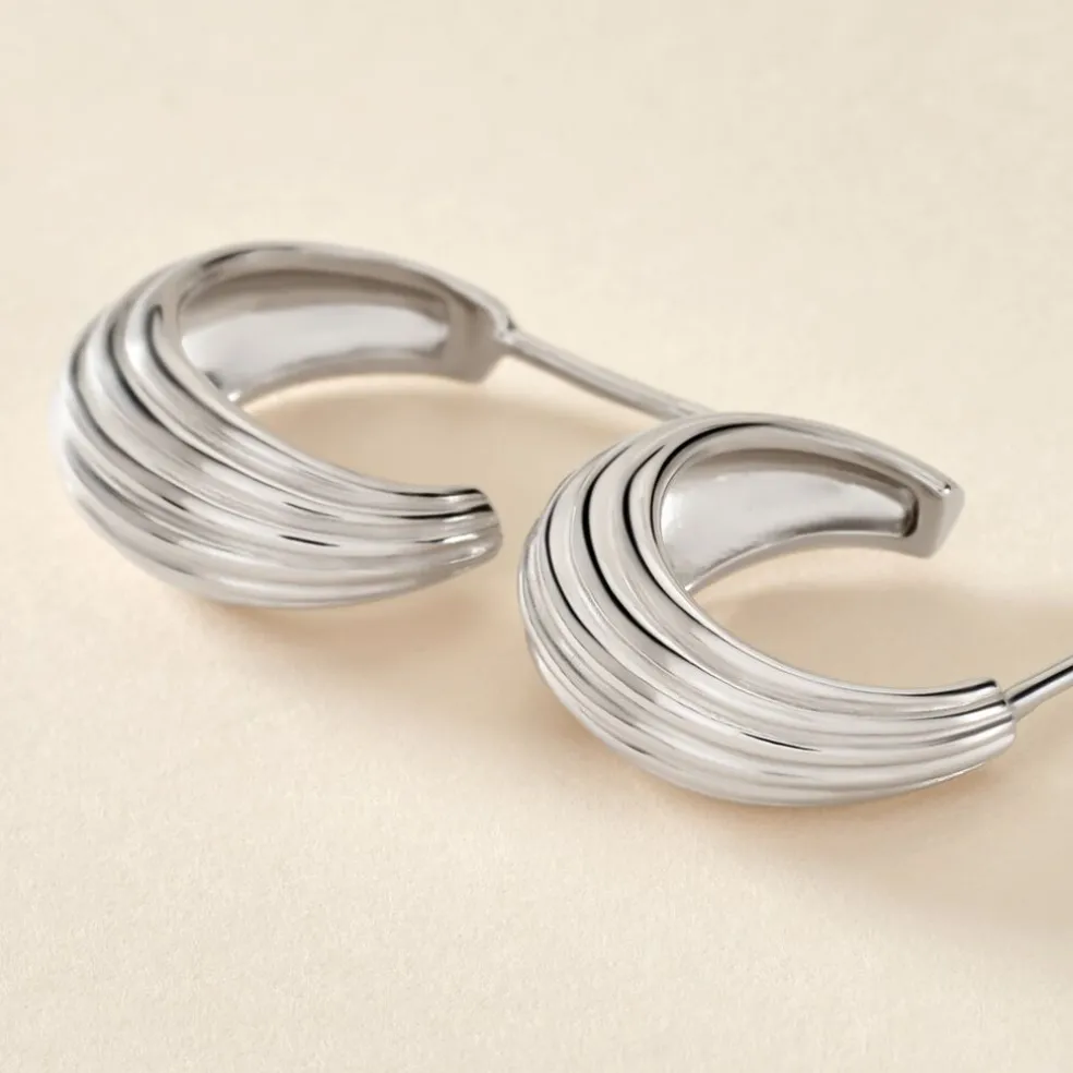 Creoles Argent Blanc 925/1000 Fils Bombes Striés Diamètre 10mm