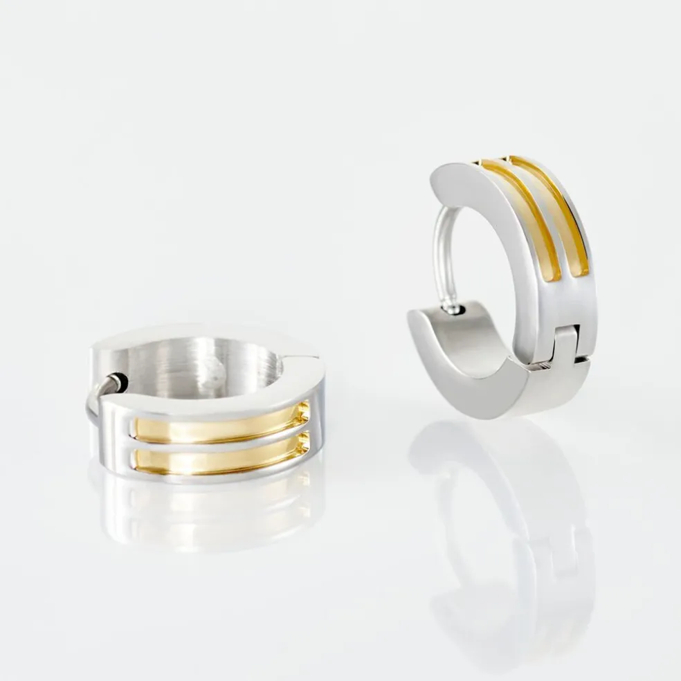 Créoles Jourdan Acier Bicolore Dore / Blanc Ronde Brossé Diamètre 2mm