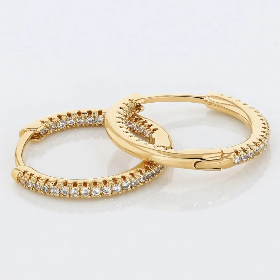 Creoles Plaqué Or Jaune Pavage Oxydes De Zirconium Exterieur Et Interieur Diametre 18.5mm