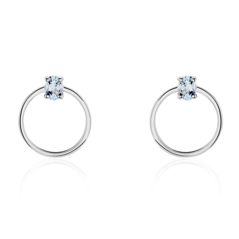 Créoles Or Blanc 375/1000 Ovaletopaze Sky Blue Serti Griffes