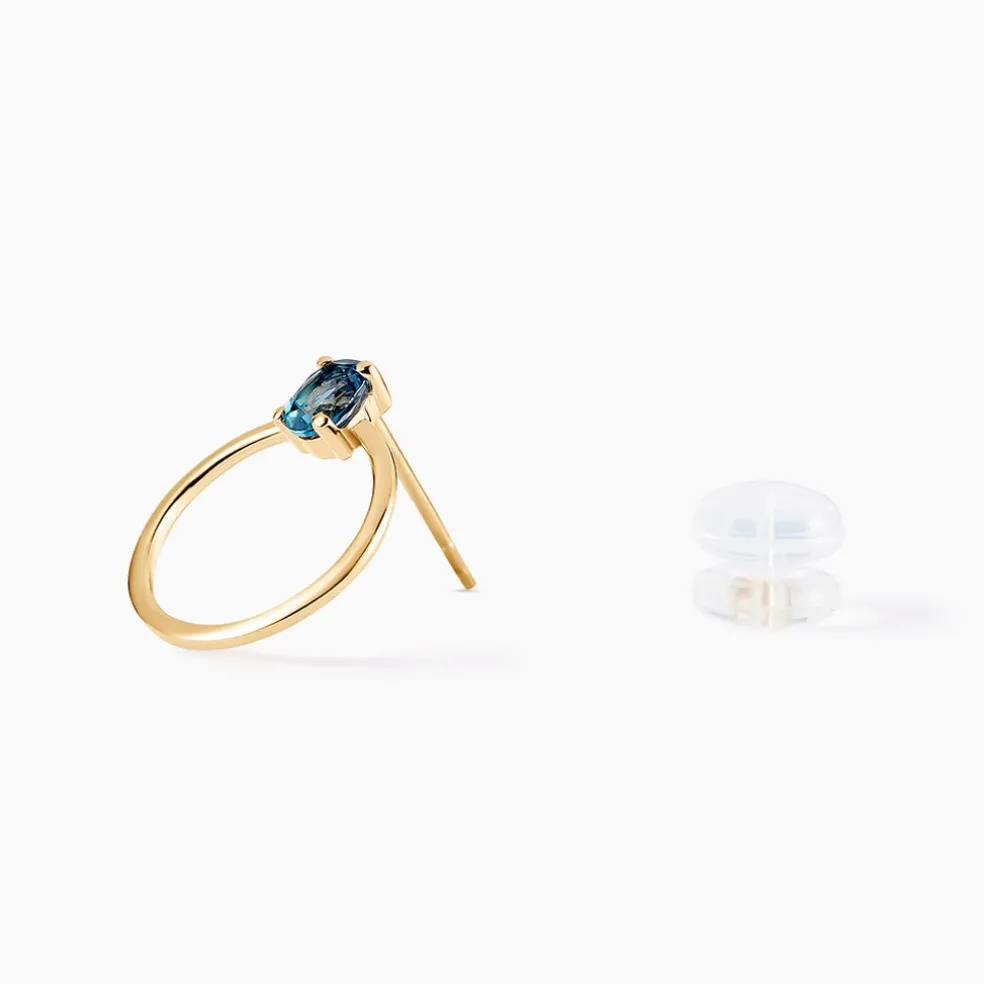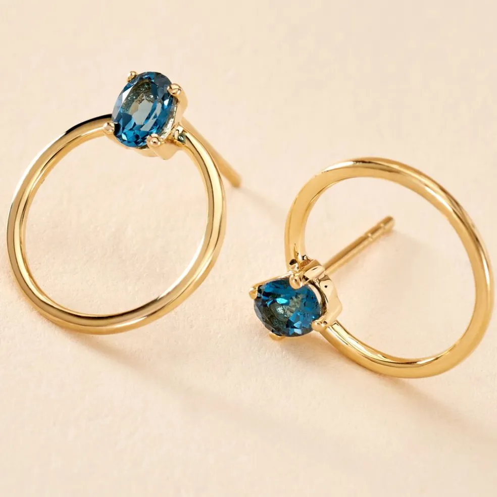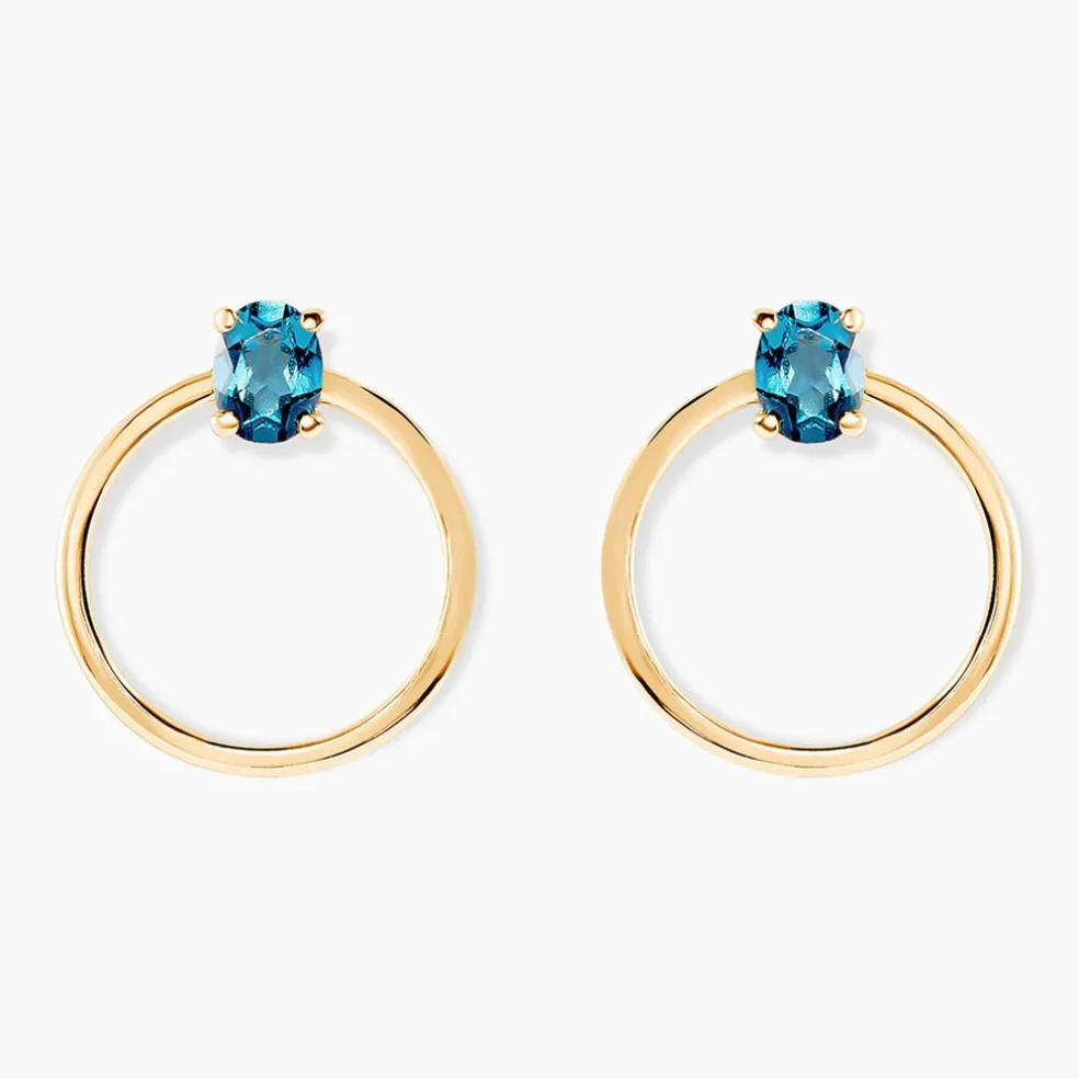 Créoles Or Jaune 375/1000 Ovale Topaze London Blue Serti Griffes