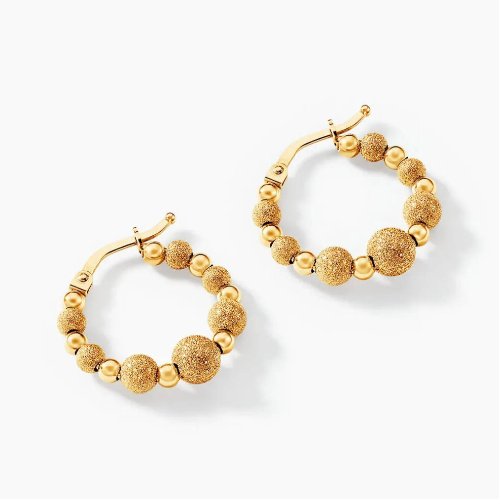 Creoles Or Jaune 750/1000 Degrade Boules Sablees Et Lisses Diametre 18mm