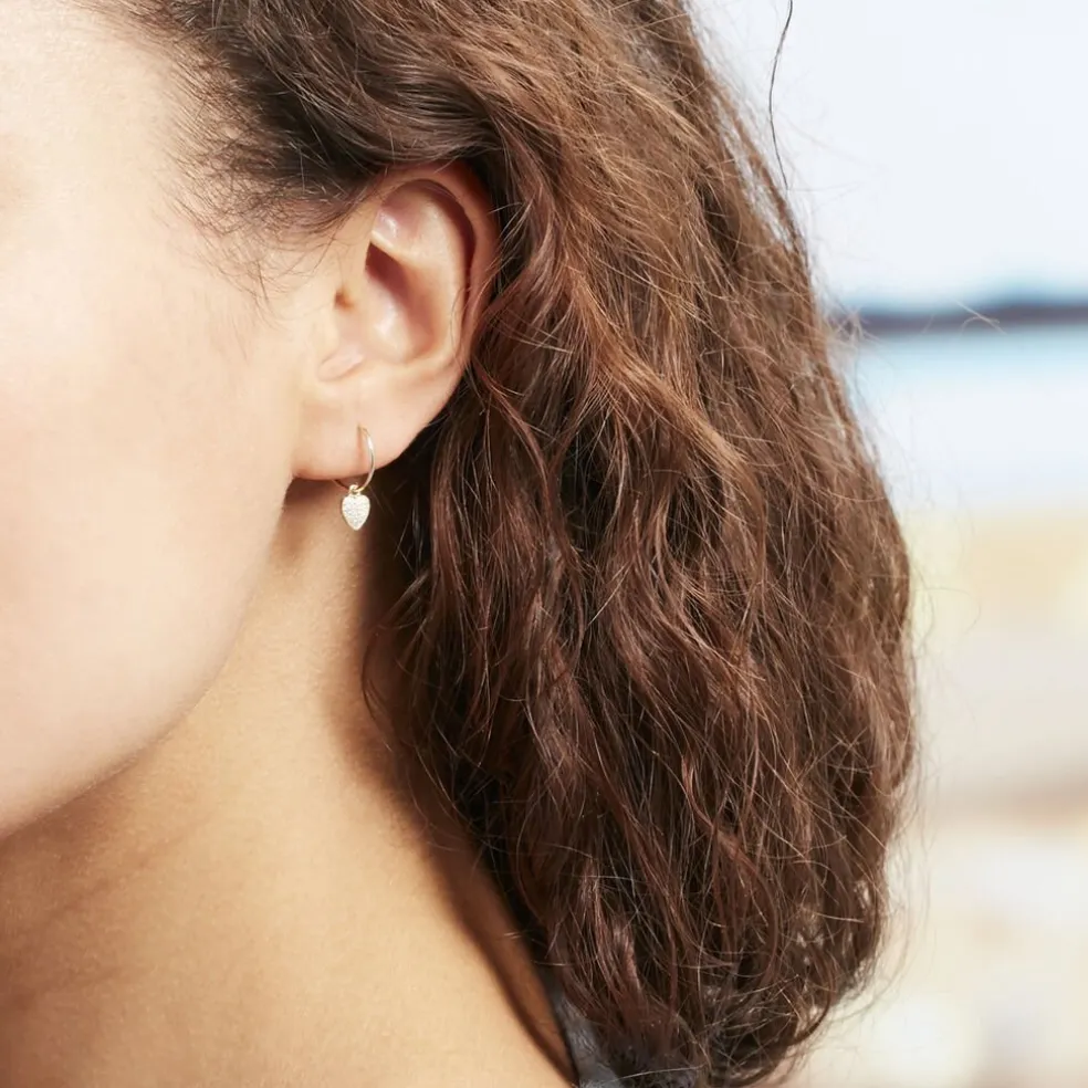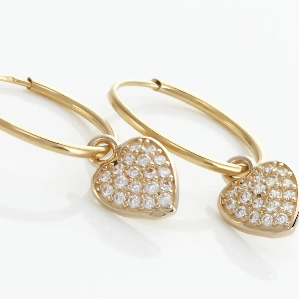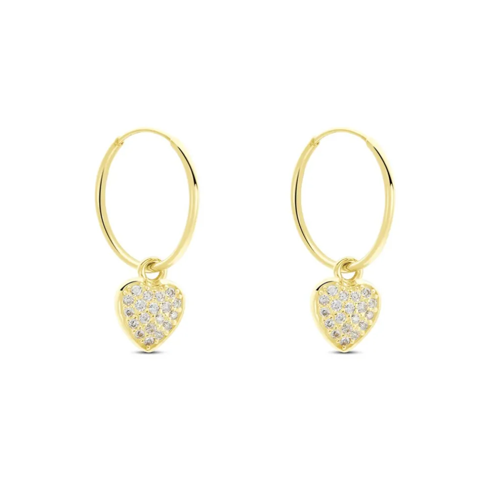 Créoles Or Jaune 375/1000 Pampilles Coeurs Oxydes De Zirconium Fil Flexible Lisse Largeur 0.8mm Diamètre 11mm