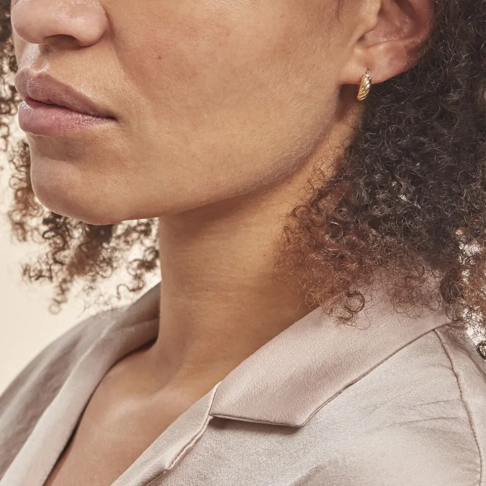 Créoles Or Jaune 375/1000 Fil Demi Jonc Strie Largeur 4mm Diamètre 8mm
