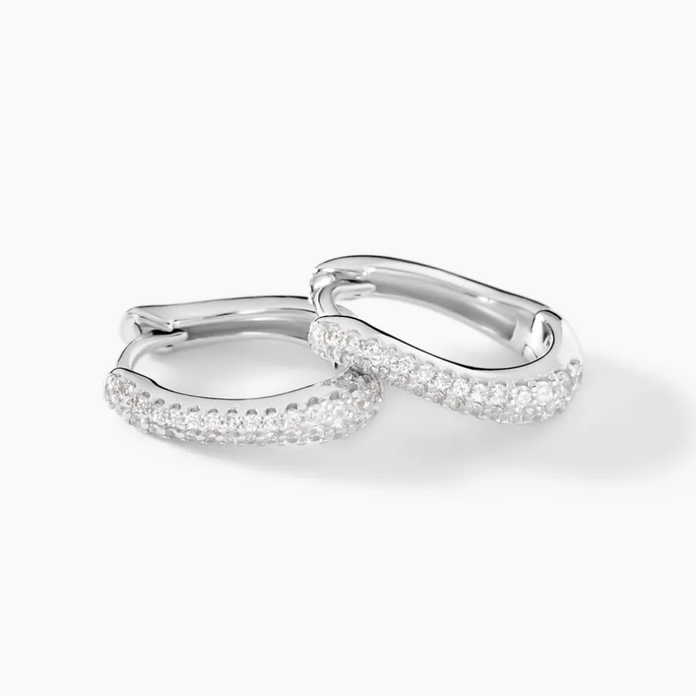 Créoles Argent Blanc 925/1000 Formes Organiques Pavage Oxydes De Zirconium Diamètre 7mm