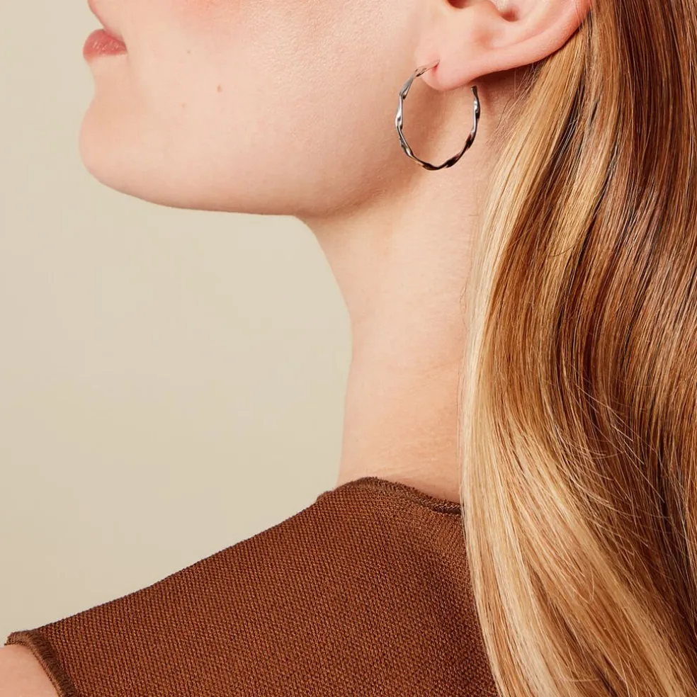 Créoles Argent Blanc 925/1000 Fil Vrillé Diamètre 30mm