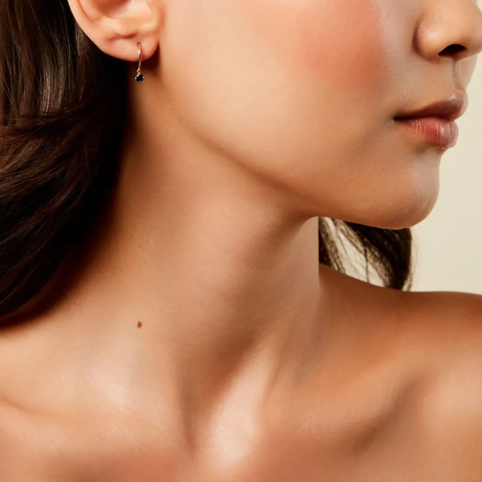Créoles Or Jaune 375/1000 Bleu Serti 4 Griffes 8Mm